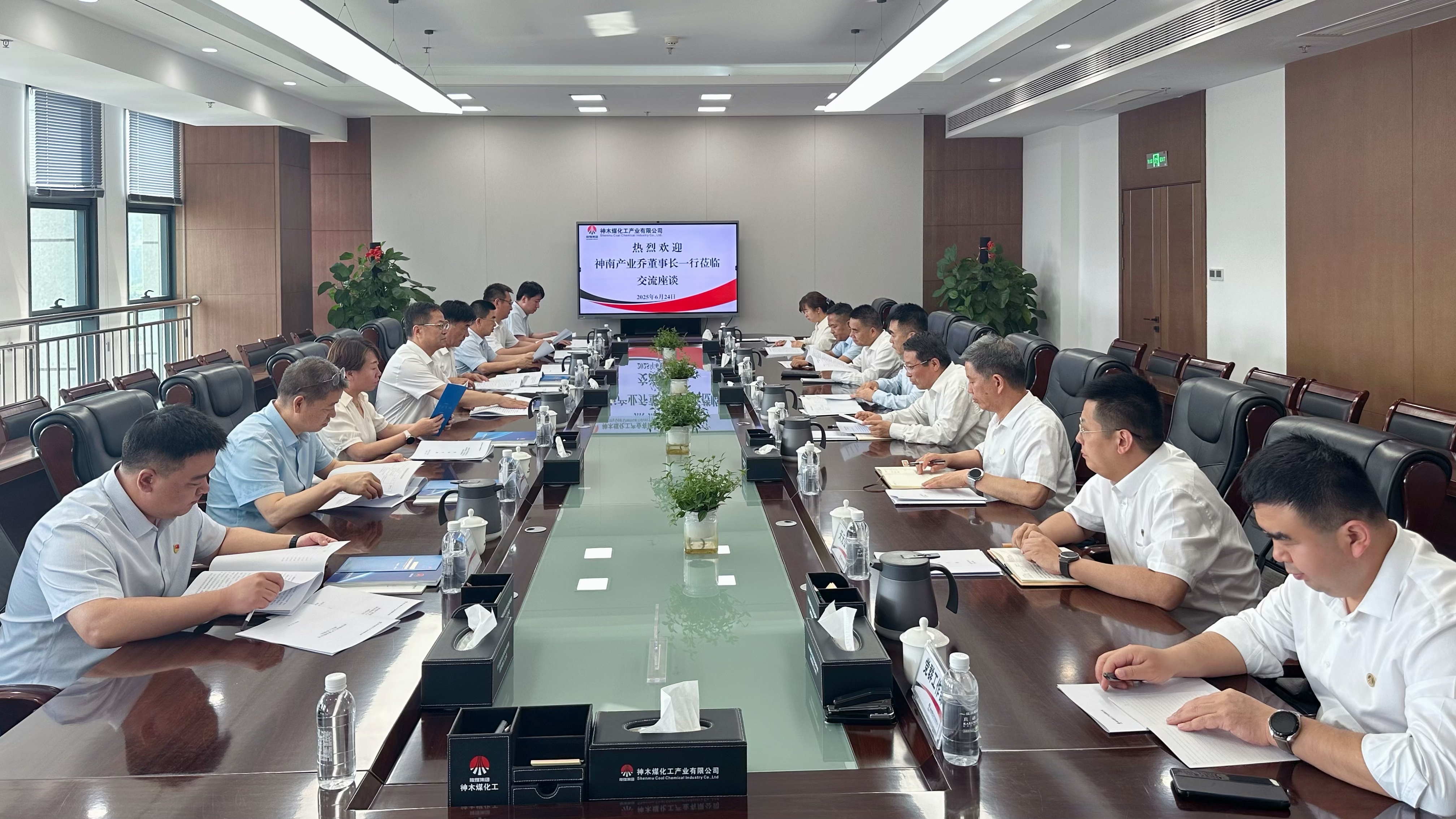 6月24日,神南产业公司党委书记、董事长乔少波,党委副书记、总经理吴文良一行到神木煤化工公司就加强业务合作、深化协同发展进行座谈交流。神木煤化工公司党委书记、董事长雷宏春,党委委员、副总经理马忠印,副总经理、总法律顾问张振涛,副总经理张泉国等参加座谈。