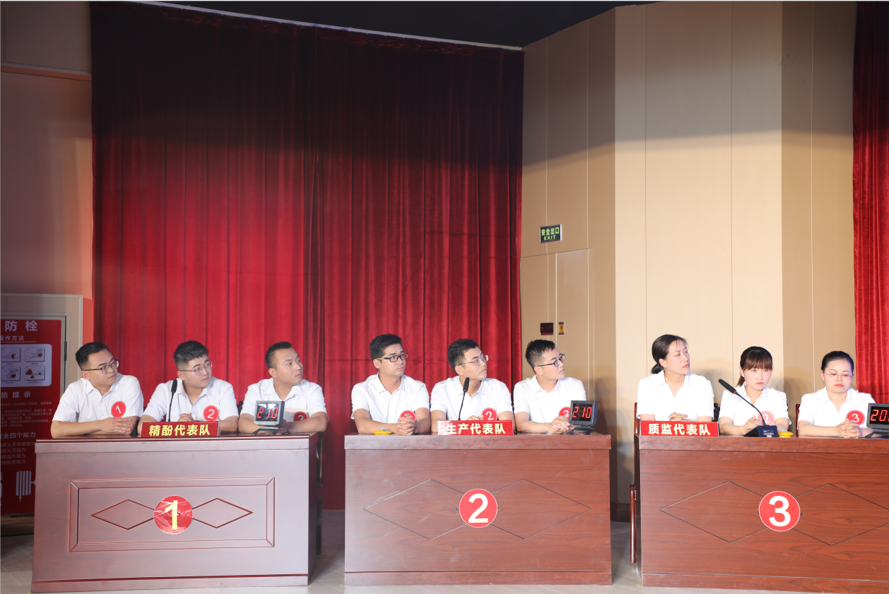 本次竞赛共设置四个环节,分别为个人必答题、小组共答题、抢答题和风险题。竞赛内容涉及《安全生产法》《刑法修正案(十一)》《“十四五”国家应急体系规划》(国发〔2021〕36号)、《生产安全事故应急条例》(国务院令第708号)等法律法规、规范性文件及安全生产管理制度等,旨在全方位考察参赛选手的知识功底。本次竞赛,分预赛、决赛两个阶段进行。天元公司10个车间、质量监督部和生产技术部共计12支代表队分两组进行预赛,每组产生的前三名顺利进入决赛。