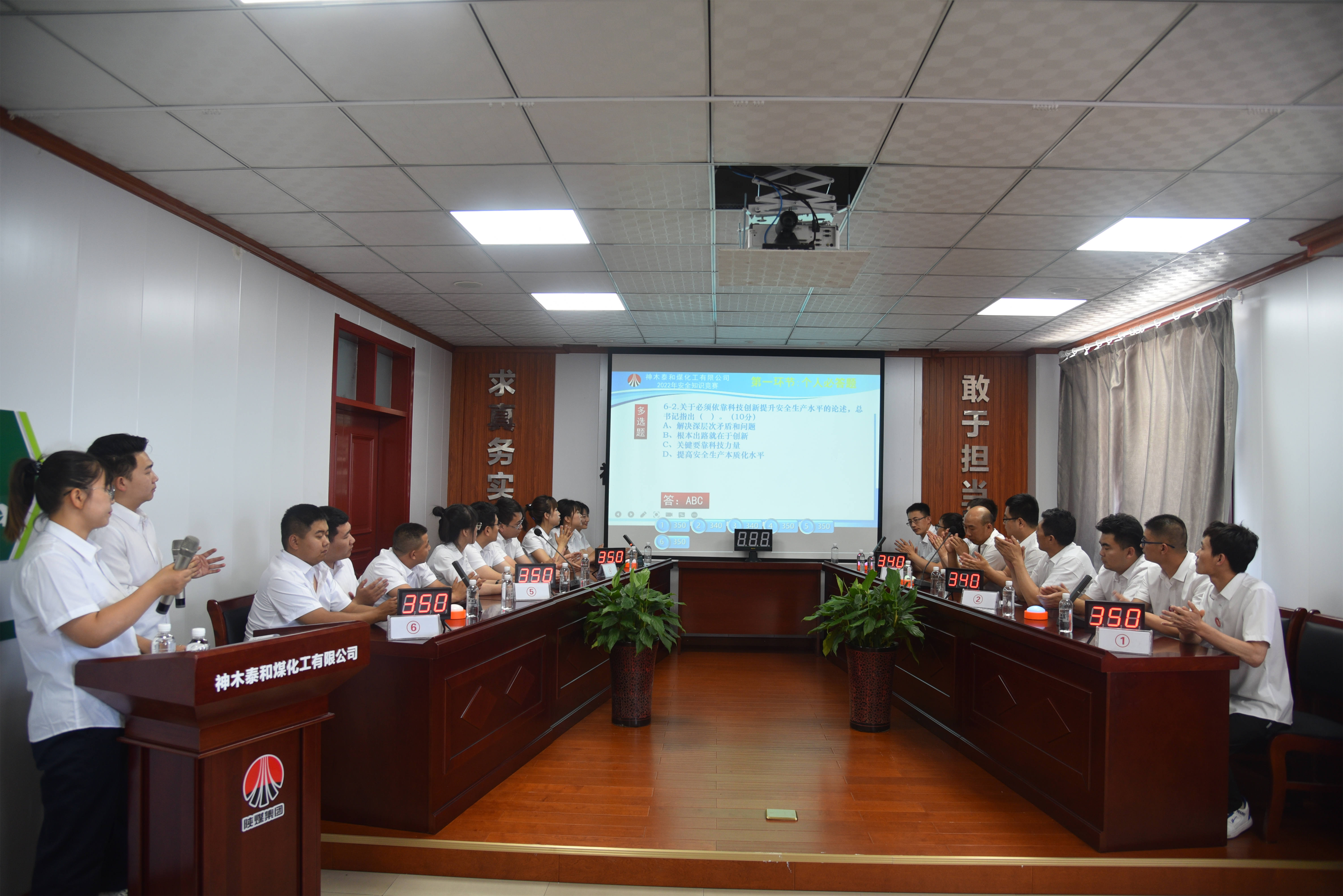 精心组织,全力备战。本次竞赛队伍由各部门、车间一把手推荐组成6支队伍,分别是石灰车间代表队、焦化车间代表队、生产技术部代表队、财务党群代表队、供销综合代表队、质量计量车间代表队,各代表队员利用下班时间,不断刷题、背题,在不影响工作的情况下,奋力备战。
