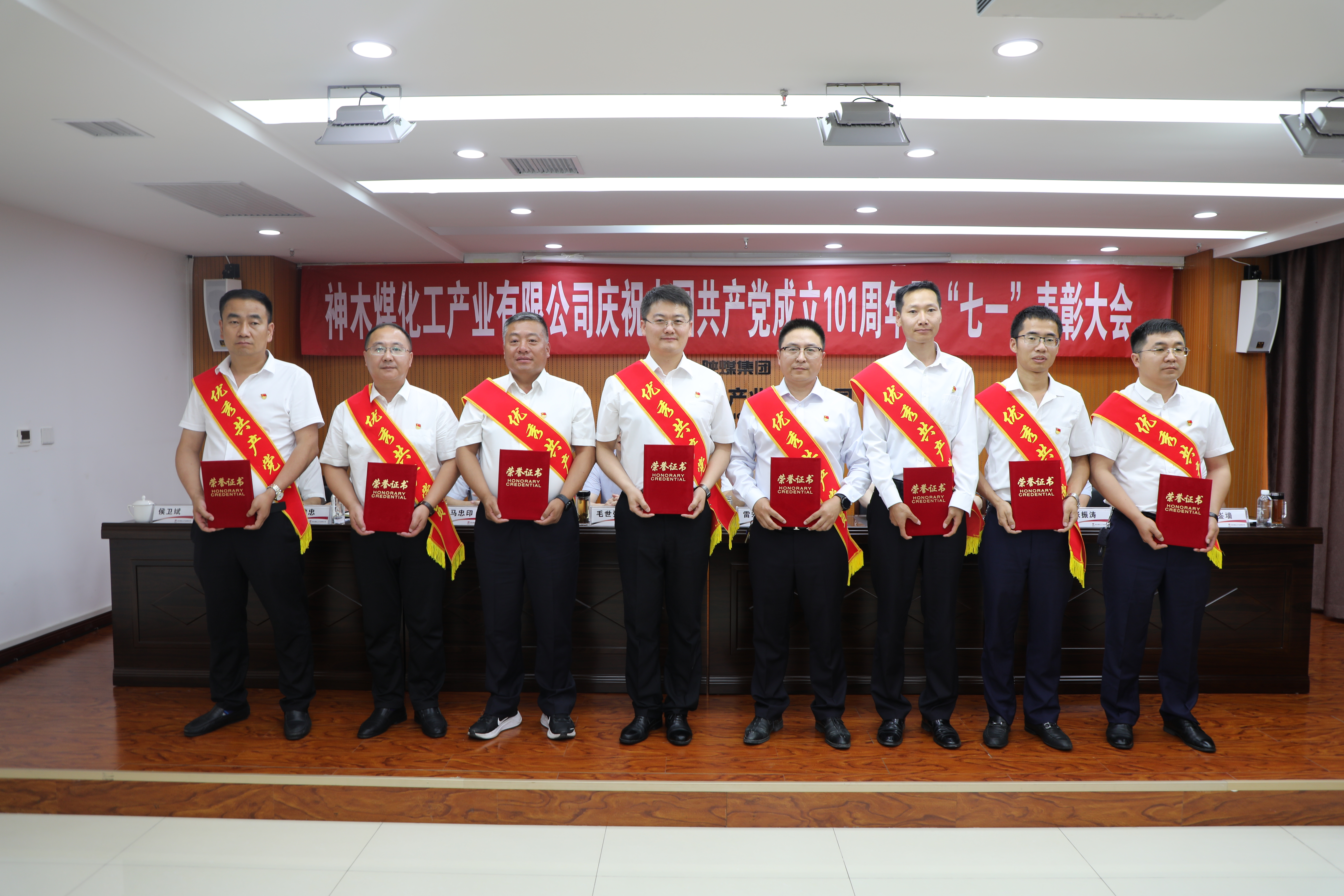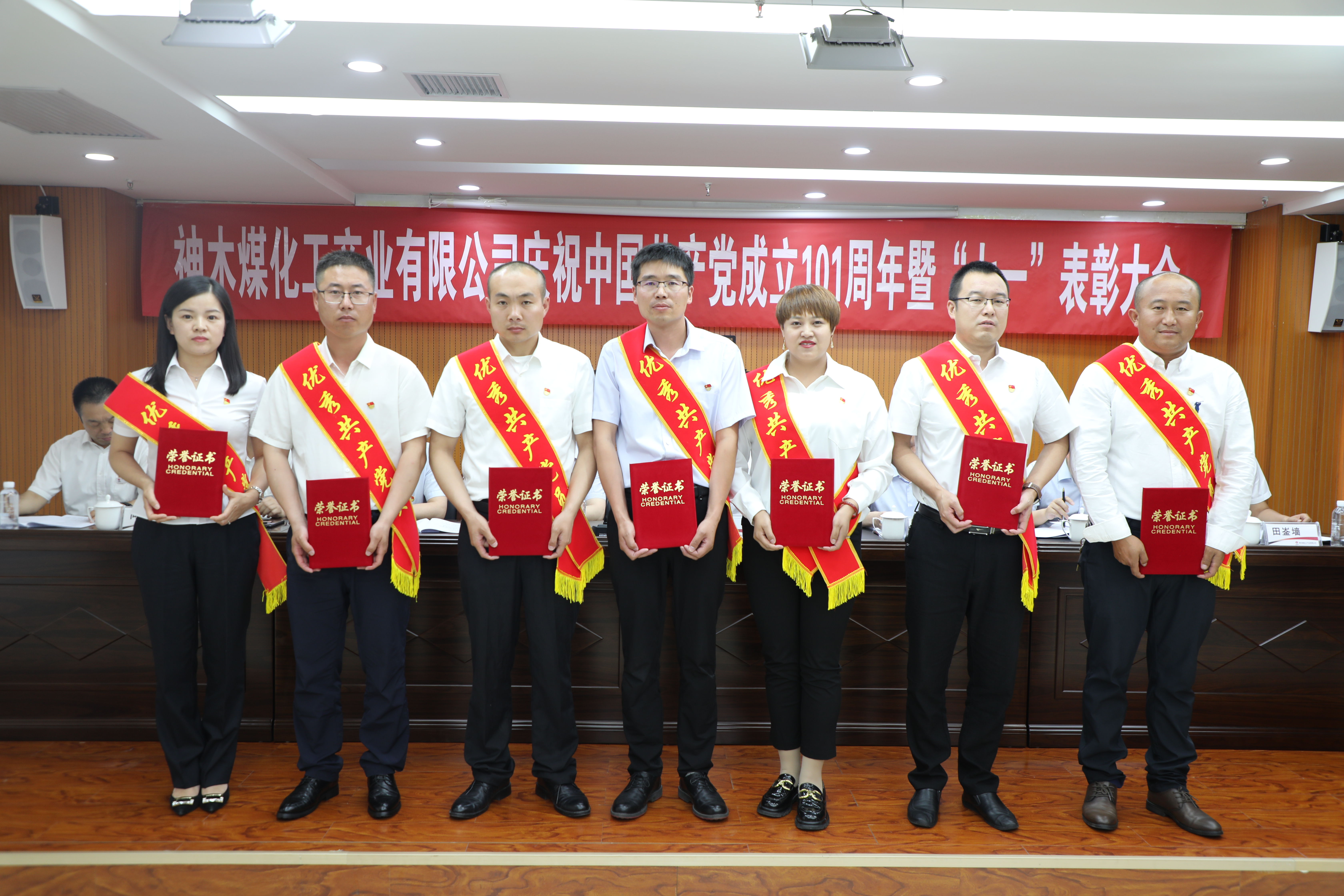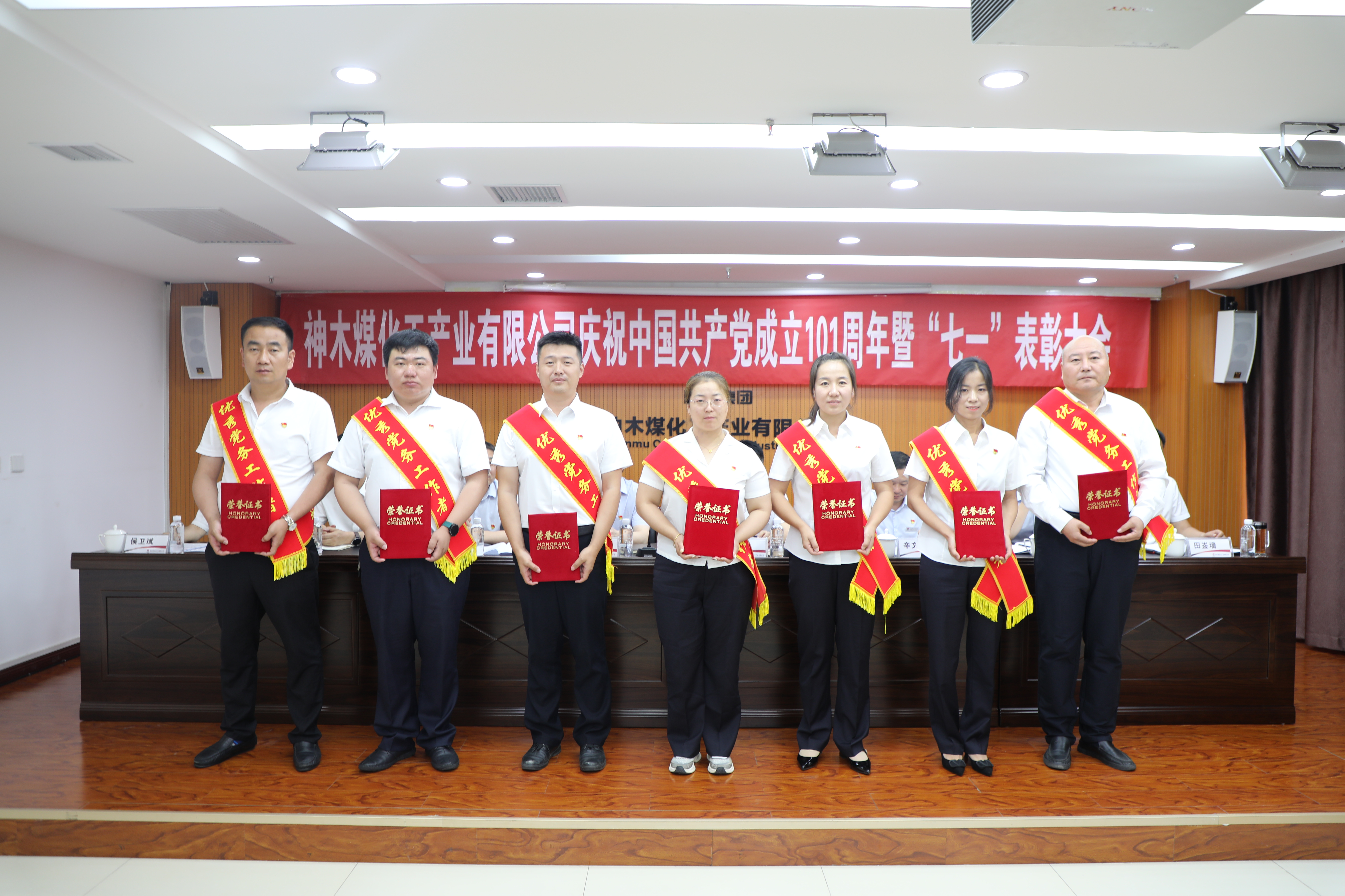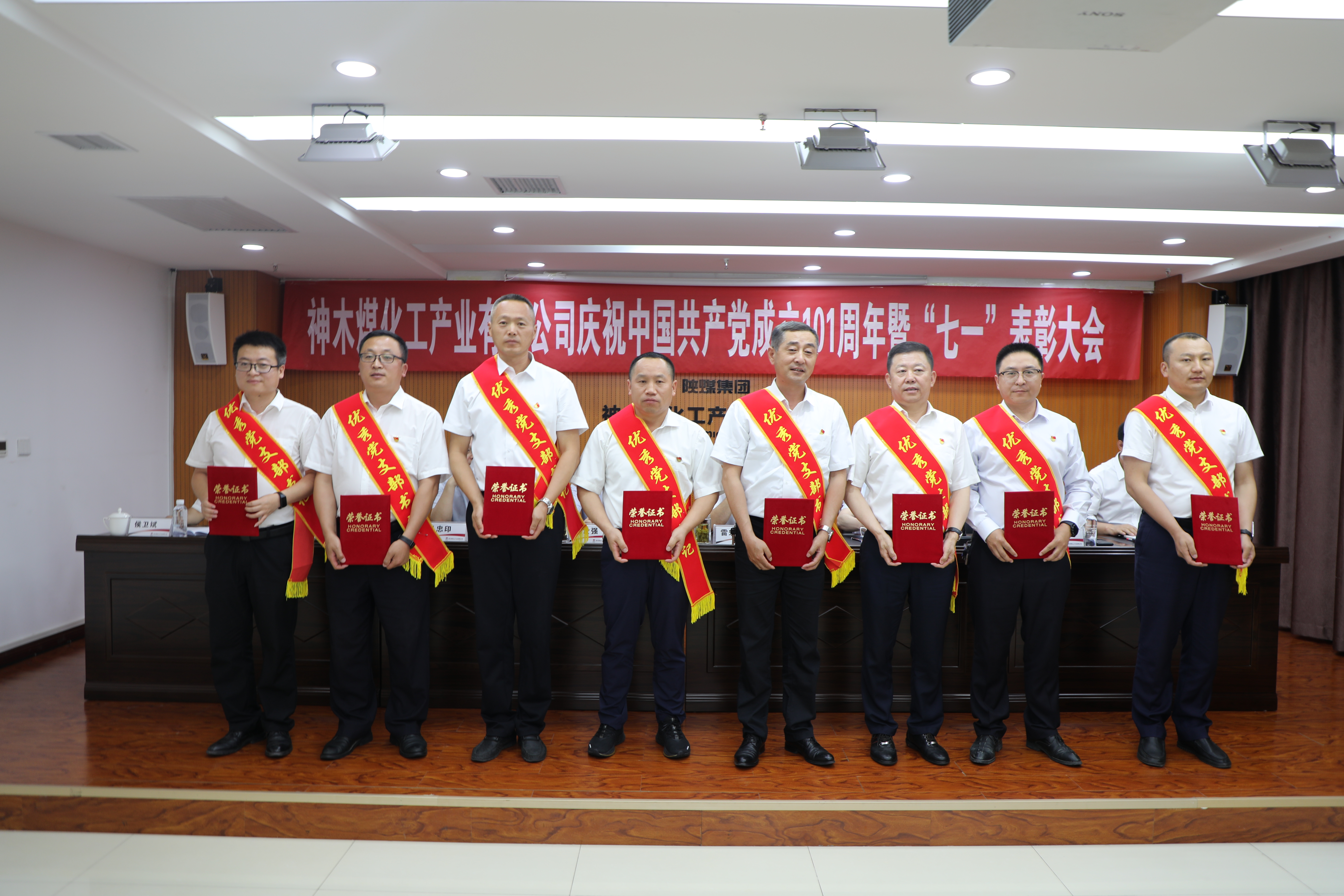 会议在庄严的国歌声中开幕。会上,神木煤化工公司党委表彰了近两年来企业涌现出的一批“四好”领导班子,“四强”党支部、优秀党支部书记、优秀共产党员、优秀党务工作者及纪检监察先进单位、先进个人。