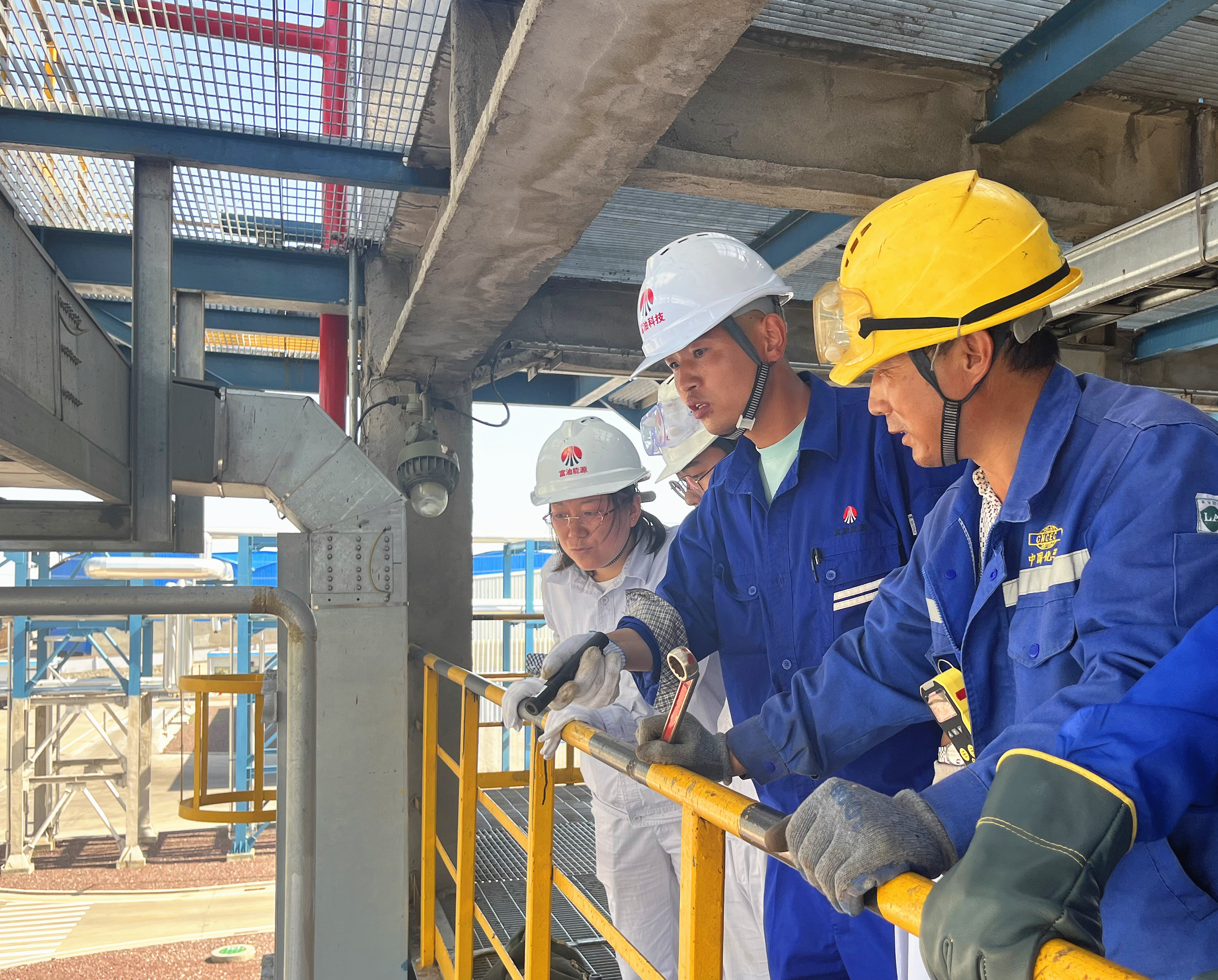 7月7日,走进富油公司环烷基油中心检修现场,在装置塔林间,樊小瑞正在爬高走低的确认工艺交接,这套装置是他平日里来的最多的地方,在34度的高温下,他已经在这里忙活较真了3个多小时……
