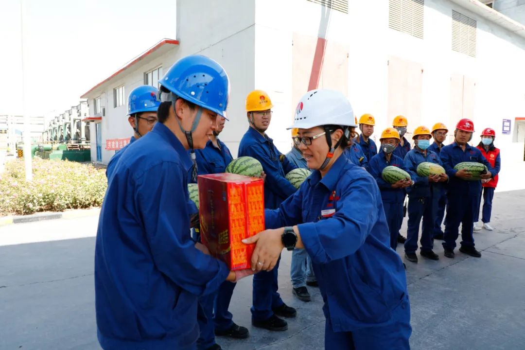 能源公司领导感谢大家为安全生产付出的辛勤努力,同时,还与一线职工亲切交流,询问他们在高温下的生产生活情况,叮嘱大家要落实好防暑降温保障措施,确保工作安全和自身安全。并要求各车间负责人要在保证安全和工作进度的情况下合理调配作息时间,做好安全生产和防暑工作。