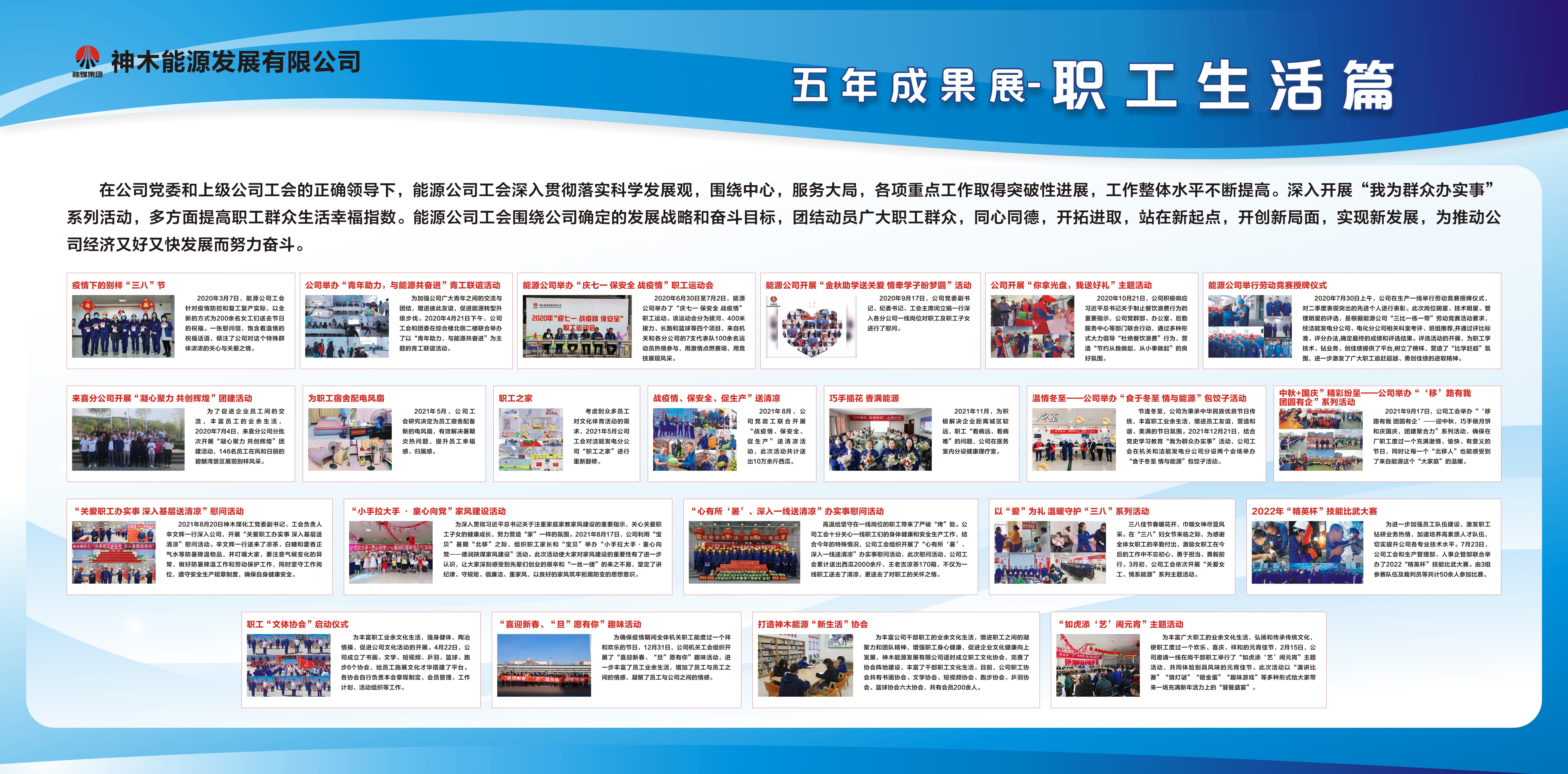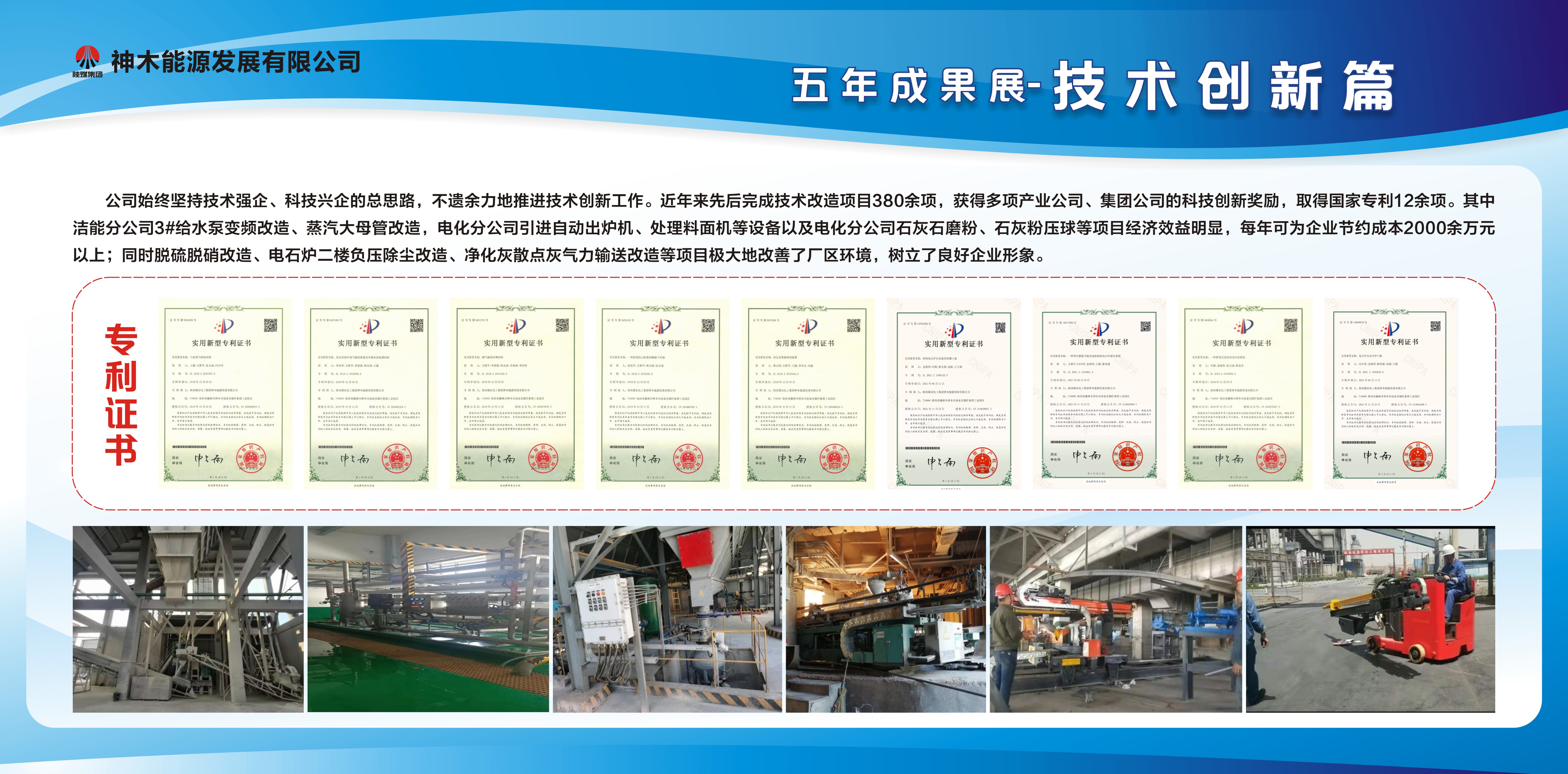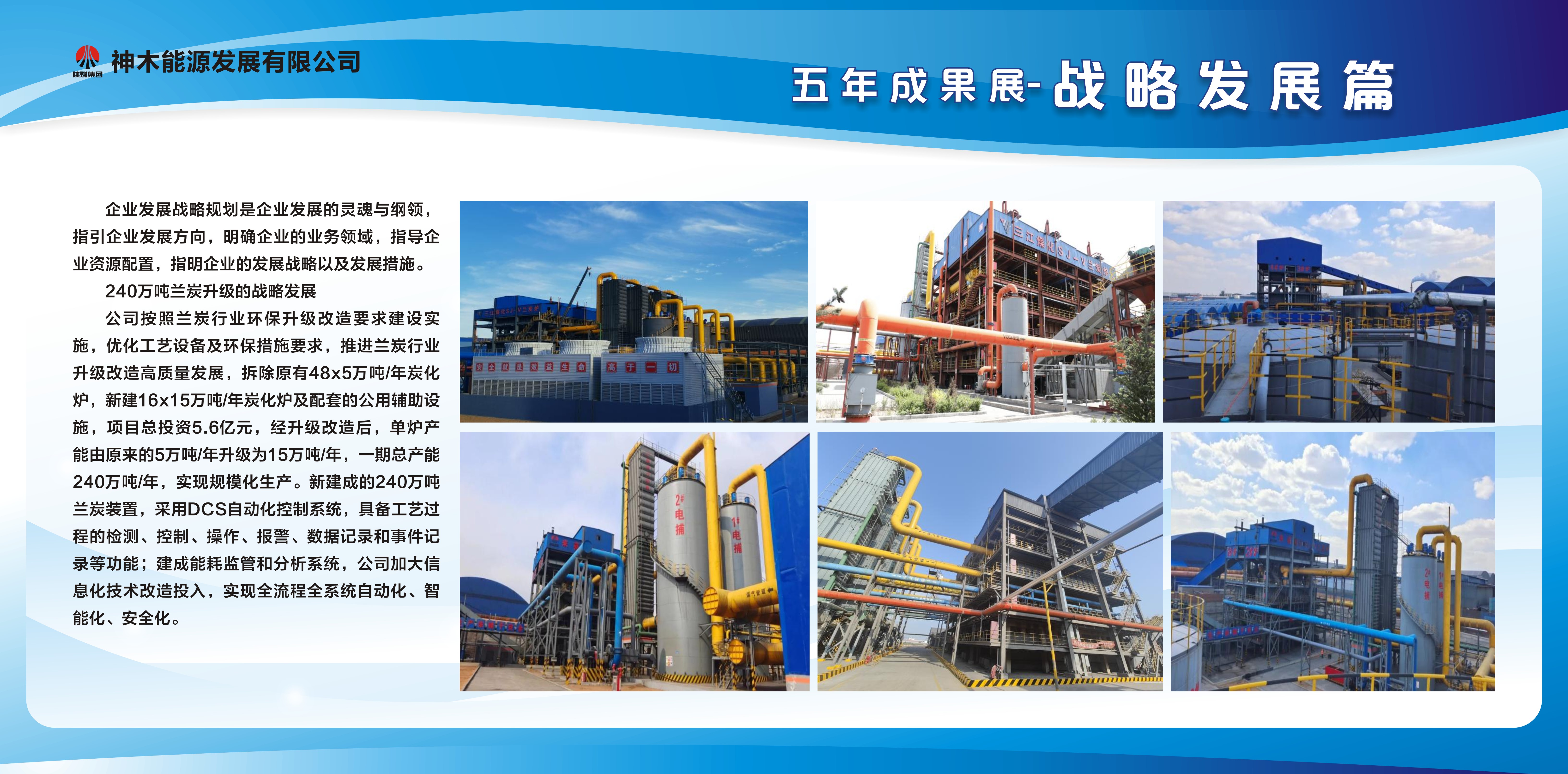 本次成果展生动展现了5年来能源公司在陕煤集团及神木煤化工公司领导下,改革创新、高质量发展的奋斗历程。整个展览分为“党建成果篇”“安全智能篇”“党风廉政篇”“经营业绩篇”“战略发展篇”“技术创新篇”“职工生活篇”等七大版块。总结了5年来,在陕煤集团及神木煤化工公司的正确领导下,能源公司踔厉扬帆、砺砥前行,从五年前的电石连年亏损,到如今的发电、电石、兰炭三大主导产业齐头并进,再到240万吨/年兰炭产业转型升级的全面完成,以匠心和恒心推动企业前行,助力能源公司高质量发展。