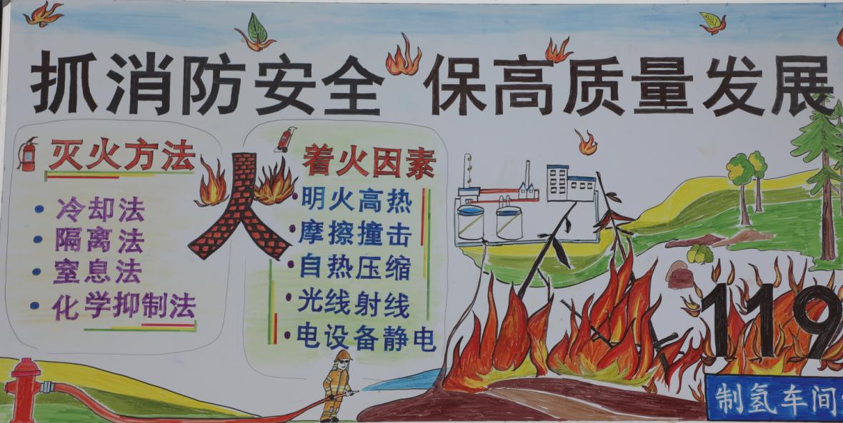 活动现场,消防保卫部对10个车间和质量监督部提前绘制的消防安全板报进行了集中展示。参展板报紧紧围绕“抓消防安全 保高质量发展”主题,图文并茂、内容充实,版面设计合理、新颖,吸引了众多过往职工的驻足观看,让大家对消防安全有了更深的理解。最终,经过评比,检修车间获得第一名,公用车间获得第二名,制氢车间获得第三名。