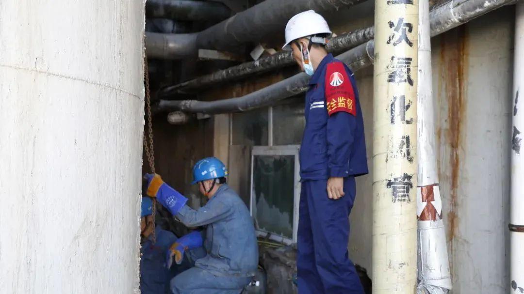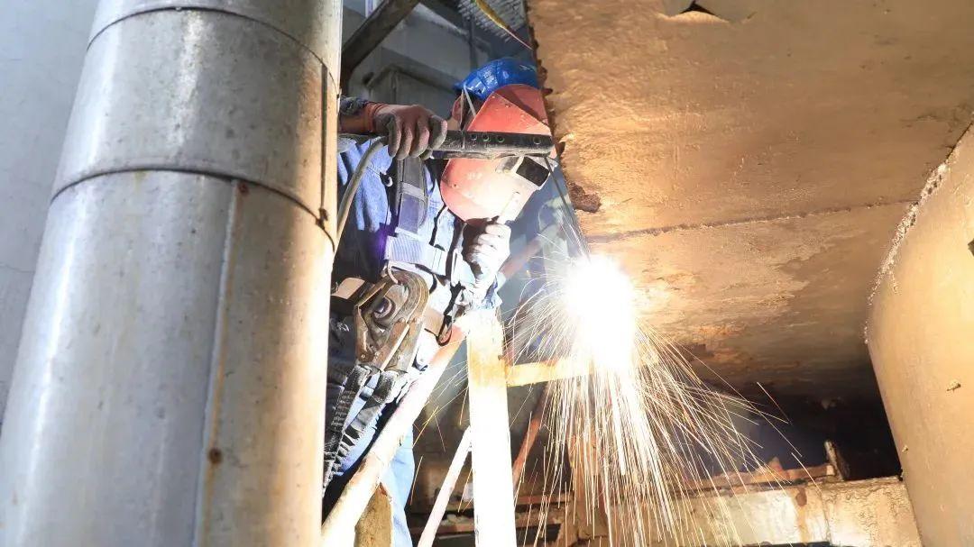 广大检修人员用执着的信念浇筑创新的果实,用火热的激情奏响检修胜利的凯歌。此前,1#脱硫塔停运后均有积料约20-30m³,检修后脱硫塔塔里积料仅为2m³左右,为能源公司节约日常维护成本约6万元。针对锅炉实际情况,检修人员将金属监督范围扩大到对关键的主蒸汽系统所有旁路、引压管、温度表管材质检测等,在本次大修过程中对新换阀门进行了开关试验、严密性试验,并对关键系统阀门门杆进行了磁粉渗透检查、材质成分检测确认、硬度检测等检测手段,确保设备质量可靠。焊花迸射,检修炉台上,检修人员手握电焊认真工作,防护面屏下被映照得火红的脸庞定格成了锅炉前最美的检修画面。