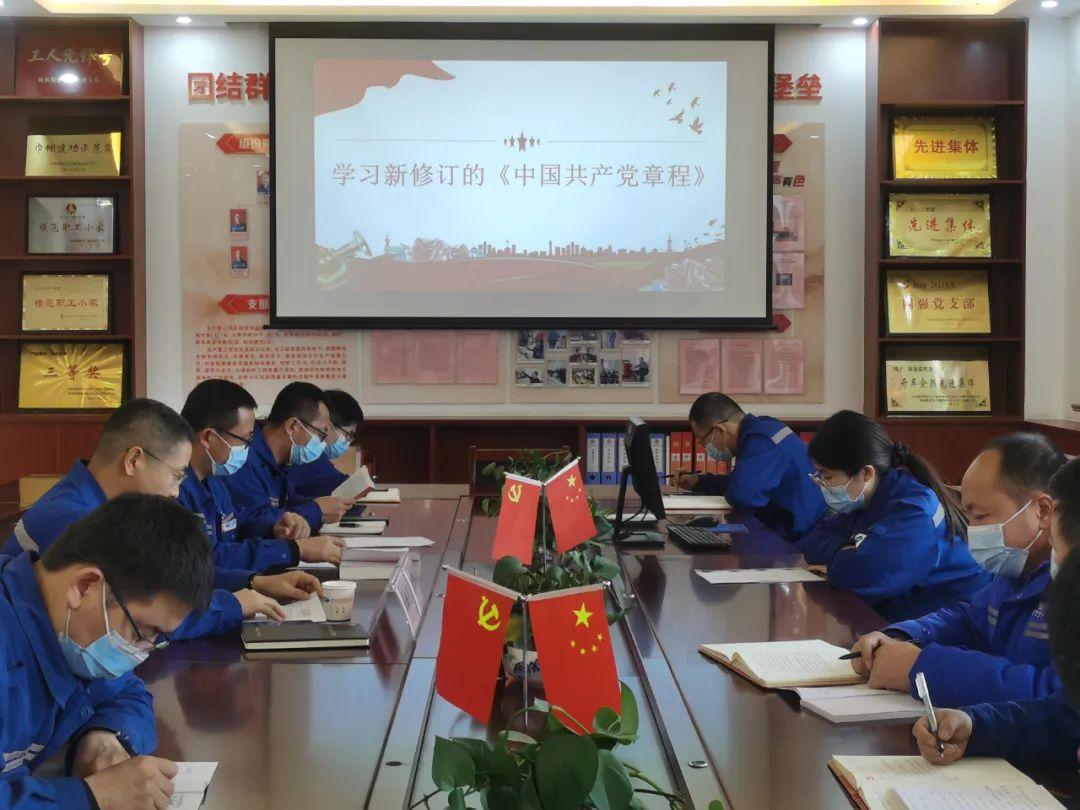宣讲结束后,生产第三党支部还开展了“学党章党规 做合格党员”主题党日活动,通过支委班子成员领学和党员研讨方式,原原本本、逐字逐句地学习了《中国共产党章程》部分章节,进一步教育引导支部全体党员强化党性观念、牢记党员身份,更加自觉地学习党章、遵守党章、贯彻党章、维护党章,认真践行党的宗旨,爱岗敬业、恪尽职守,不断提升自身工作能力,为天元公司高质量发展贡献力量。(贺静)