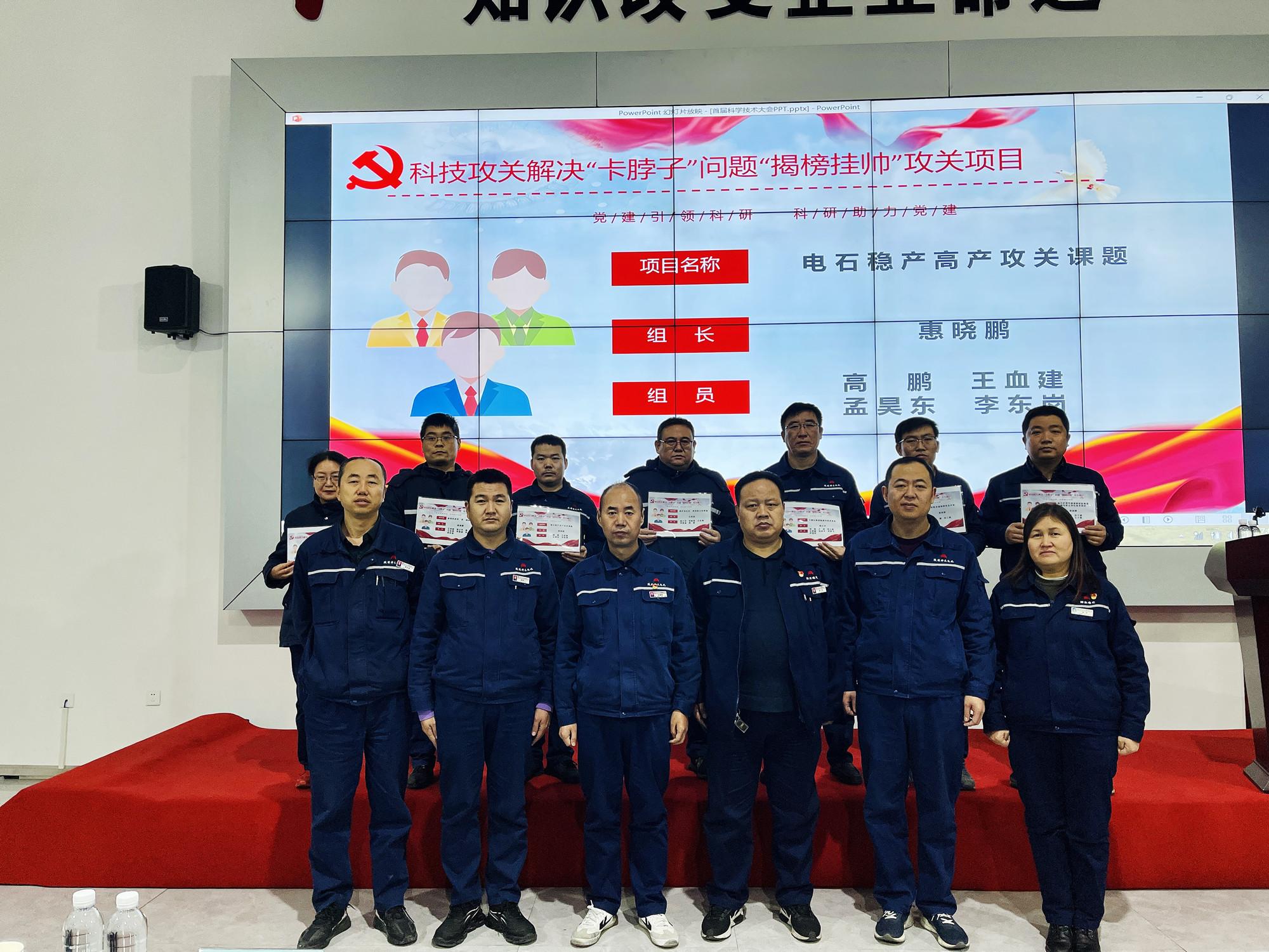每个“揭榜”团队选派了专业经验丰富的人员作为“军师”,指导推进攻关项目实施。电化公司举行了“揭榜挂帅”揭榜授牌仪式,各项目组长作为“挂帅者”领取了项目牌。并郑重承诺将带领团队以敢于进取、勇于创新、真抓实干的精神,解决企业“卡脖子”问题,为电化公司高质量发展贡献智慧和力量。