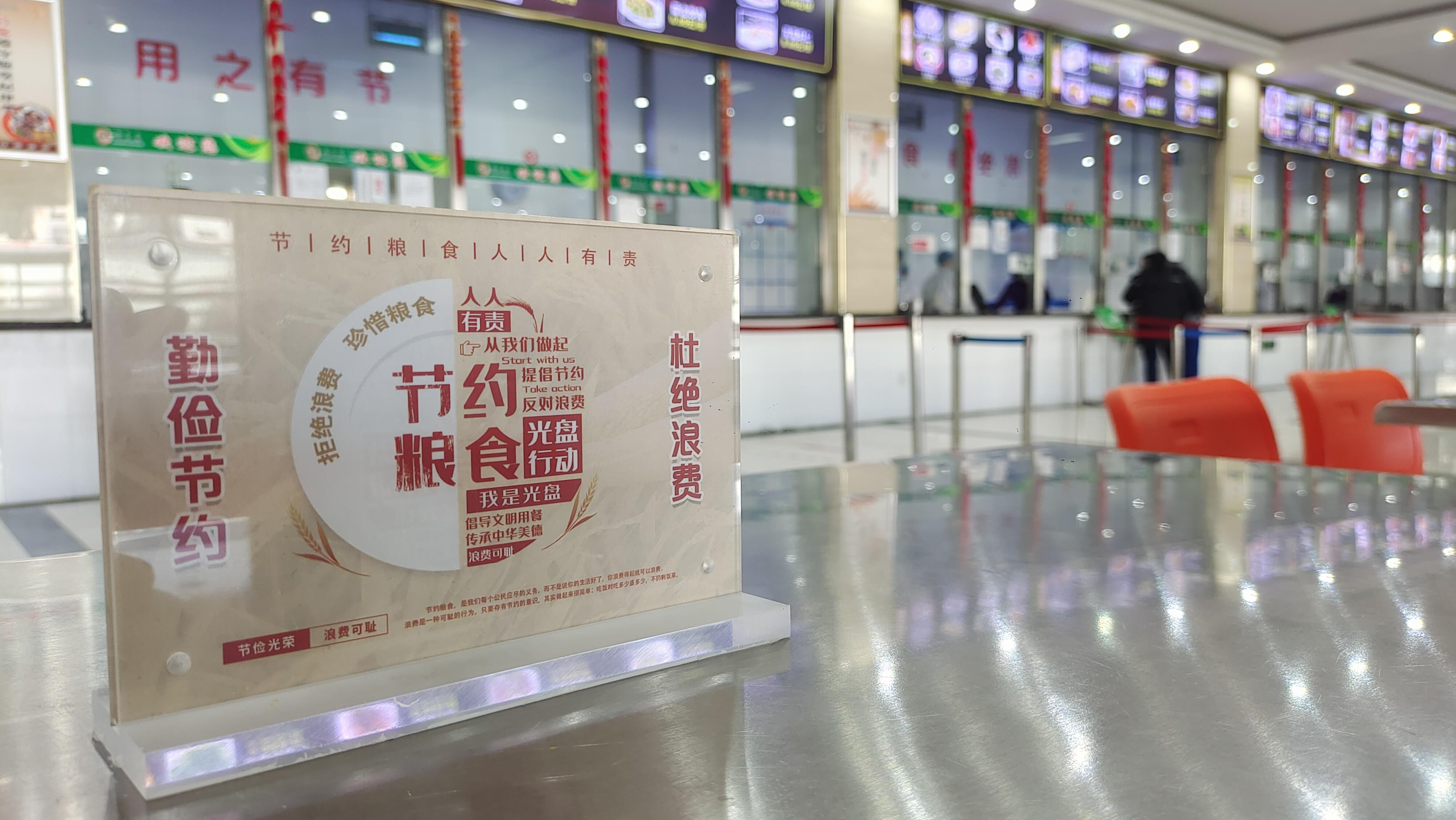 走进能源公司职工餐厅,首先映入眼帘的是食堂四周墙壁上布设的“珍惜粮食”“文明用餐”“光盘行动”“讲究卫生”主题文化墙和横幅。同时,能源公司还将“文明用餐”“光盘行动”等主题制作成易拉宝宣传展板和桌牌,摆放在干部职工打饭就餐必经通道,随时随处提醒职工养成节约习惯,制止餐饮浪费。能源公司将厉行节约反对浪费的标识标语上墙上桌,打造了一个以节约粮食为核心思想的食堂文化。