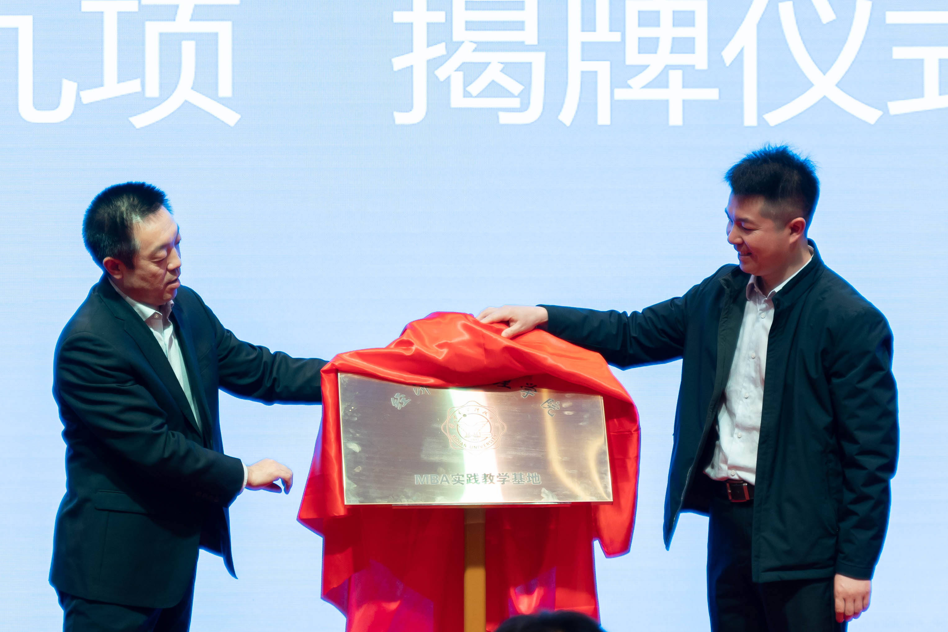 开学典礼上,西安电子科技大学经济与管理学院与神木煤化工公司举行了MBA实践教学基地揭牌仪式,学院副院长谢永平为2022级新生授旗、佩戴校徽。2021级校友康孝利发言作为在校生代表发言;屈海飞作为新生代表发言。