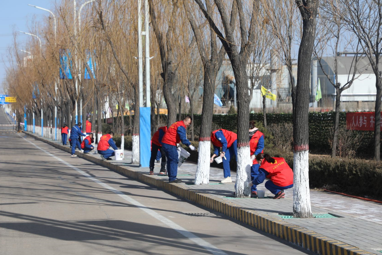 随后,志愿者们拿着水桶、刷子等工具,或三人结对,或两人一组,开始配比涂料,并按照统一标准为行政楼前主干道两侧的树木涂白、刷红。活动现场,大家分工协作、干劲十足,发扬不怕脏不怕累的精神,认真对每棵树木进行规范涂刷,即使涂料溅到手上、衣服上、鞋上,也丝毫没有影响到刷树的热情,一次又一次弯腰,一次又一次站立……最终,经过大家2个小时的努力,保质保量完成了活动任务,为200余棵树穿上了防虫祛病的白色“新衣”。