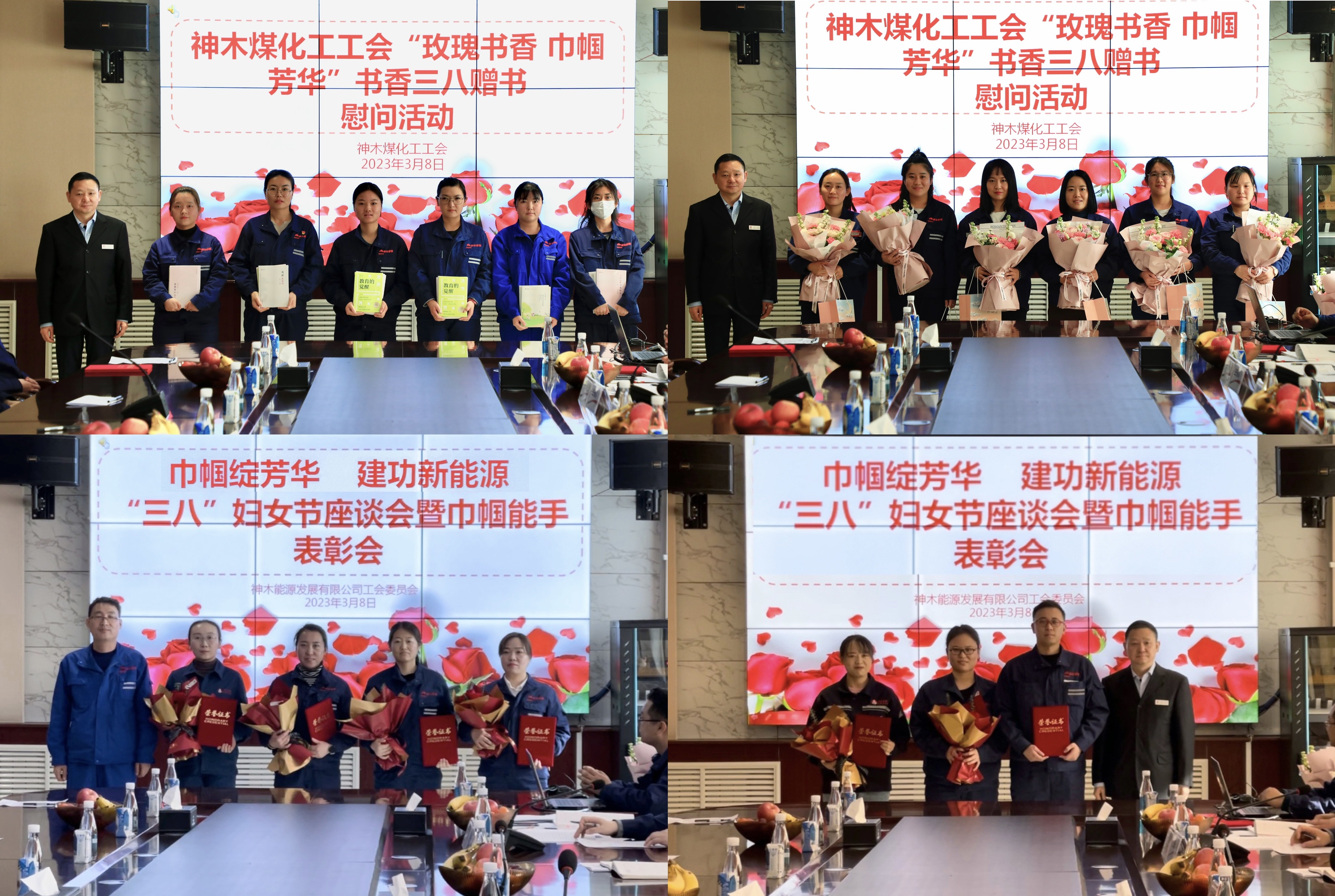 会议表彰了张丹、薛艳、杨丹、周苗荣4名“巾帼能手”和王峰、折小兵2户“五好文明家庭”。辛文辉为女职工们送出了精心挑选的书籍、伴手礼和美丽的鲜花,把神木煤化工工会的关怀带到来女职工身边。会后,能源公司工会还为全体女职工送出了家庭清洁礼包。