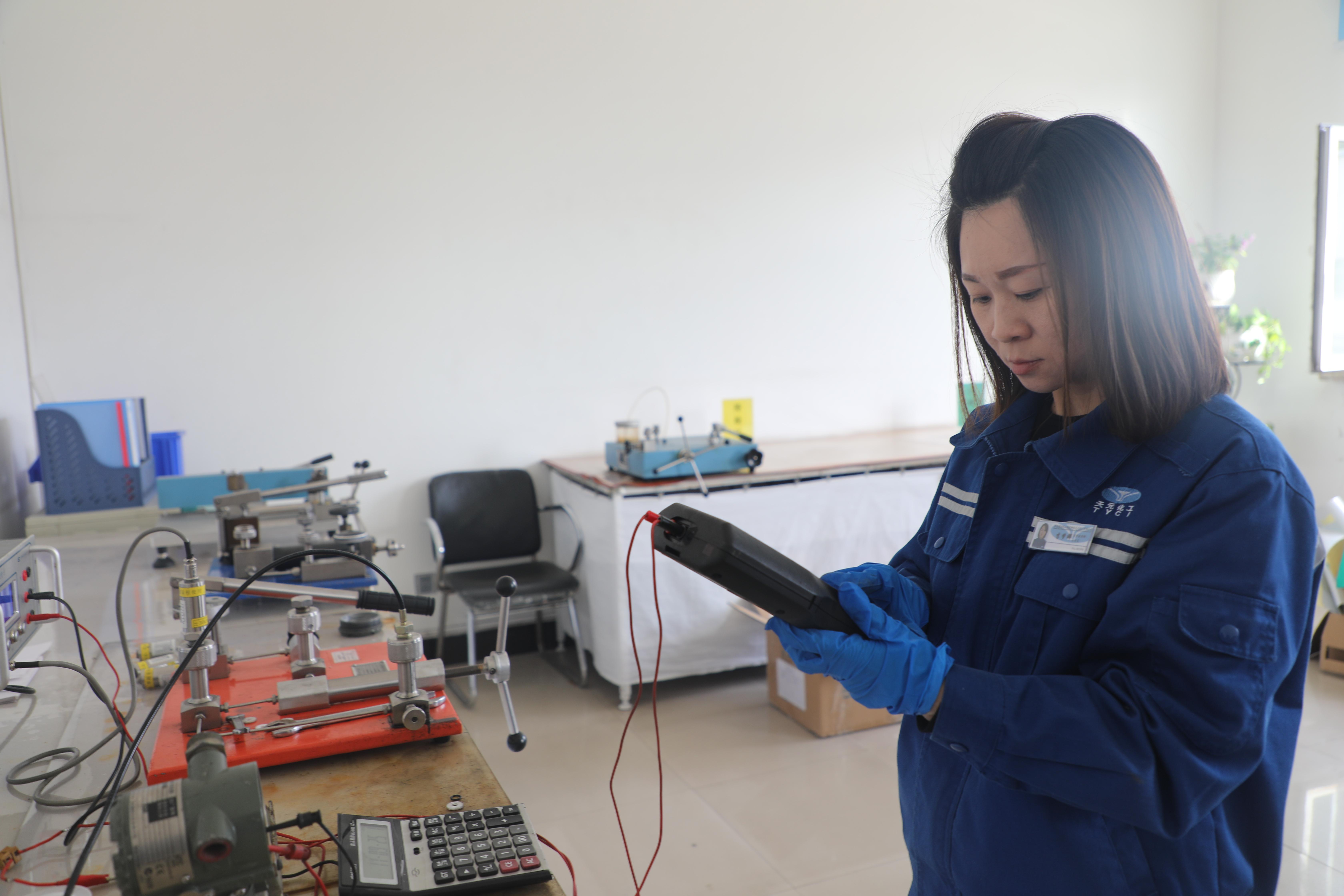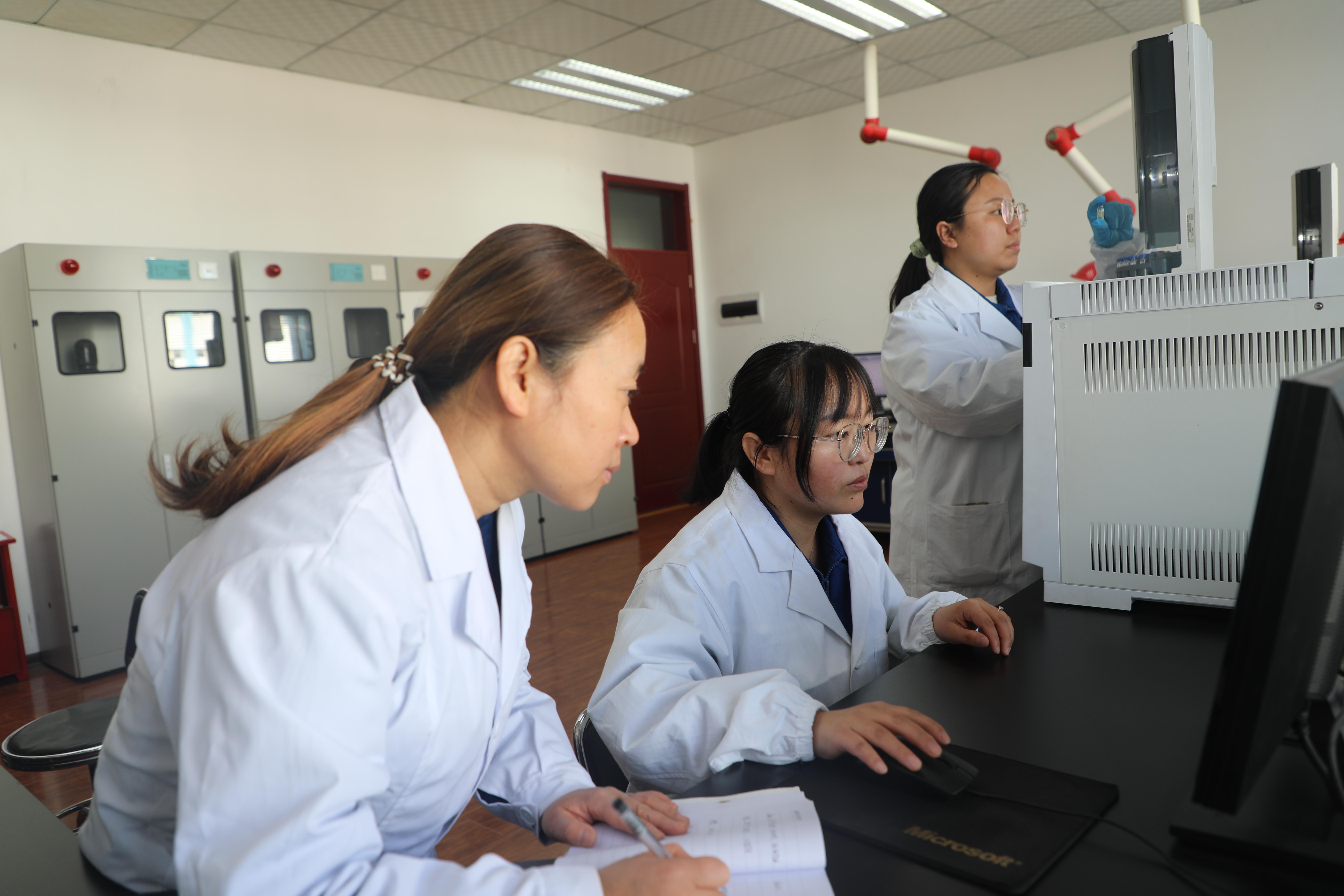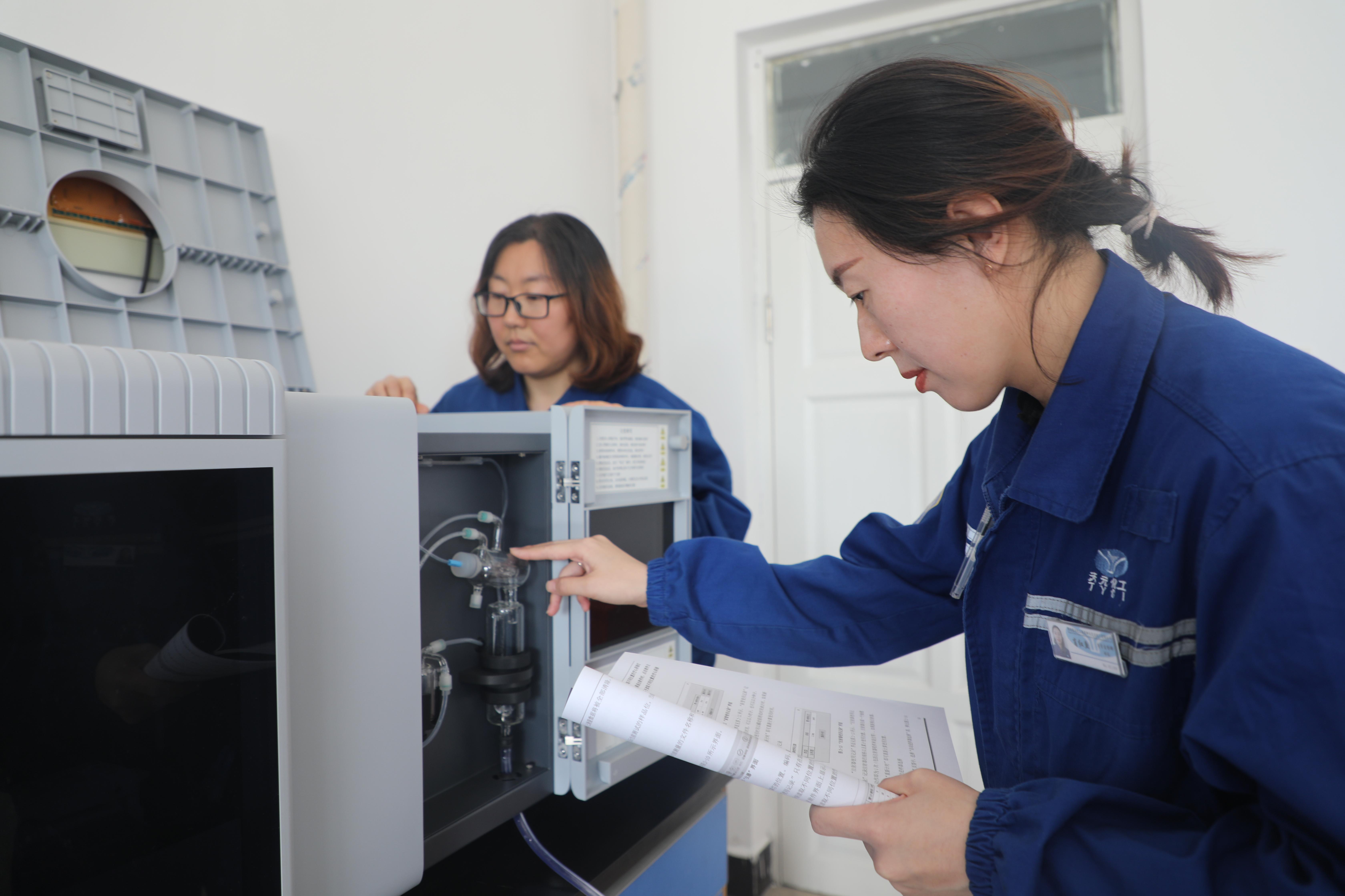 质量监督部姬飞燕和肖红鱼在学习水质分析仪器使用方法