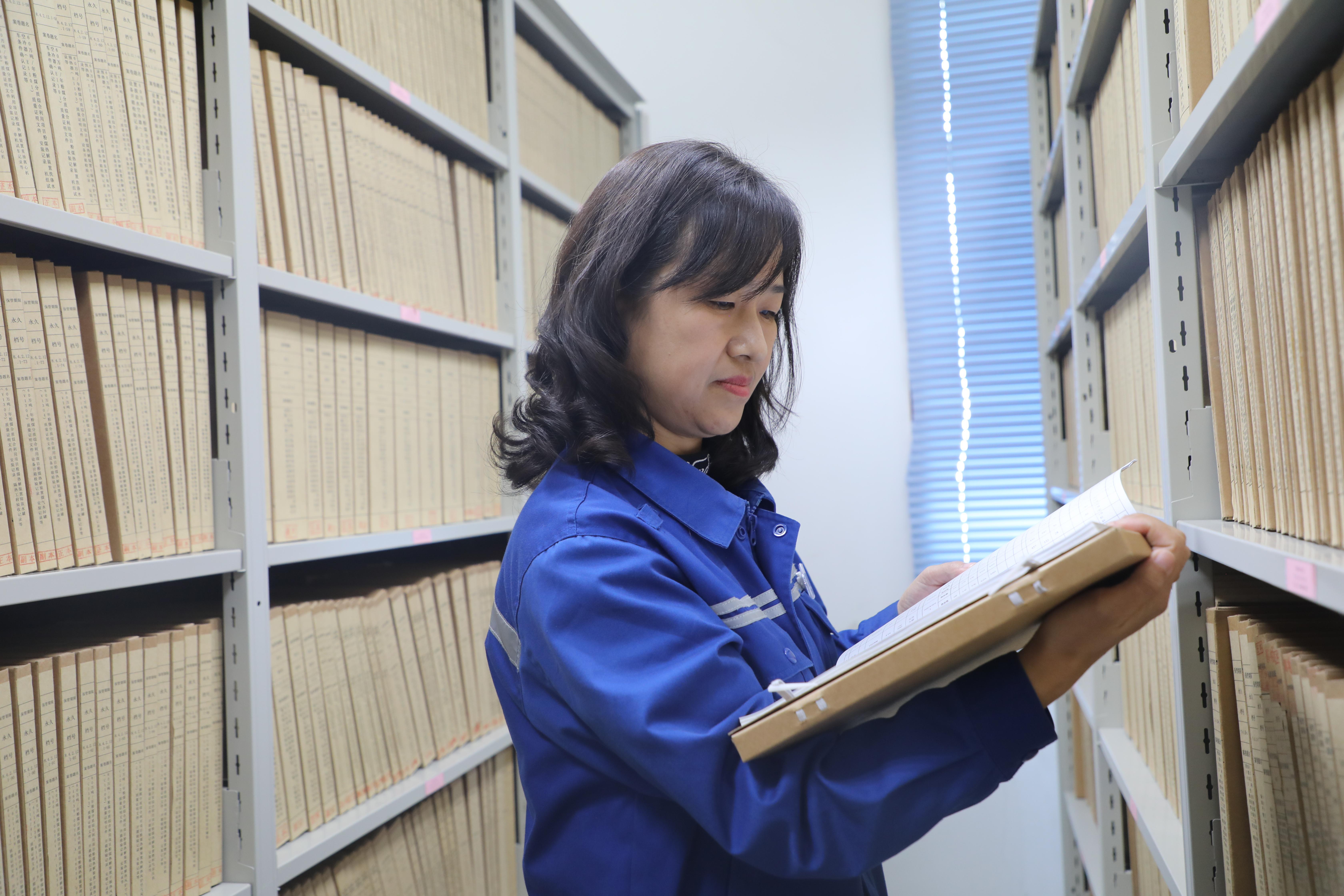 综合办公室杨彩艳为相关人员调阅工程档案资料