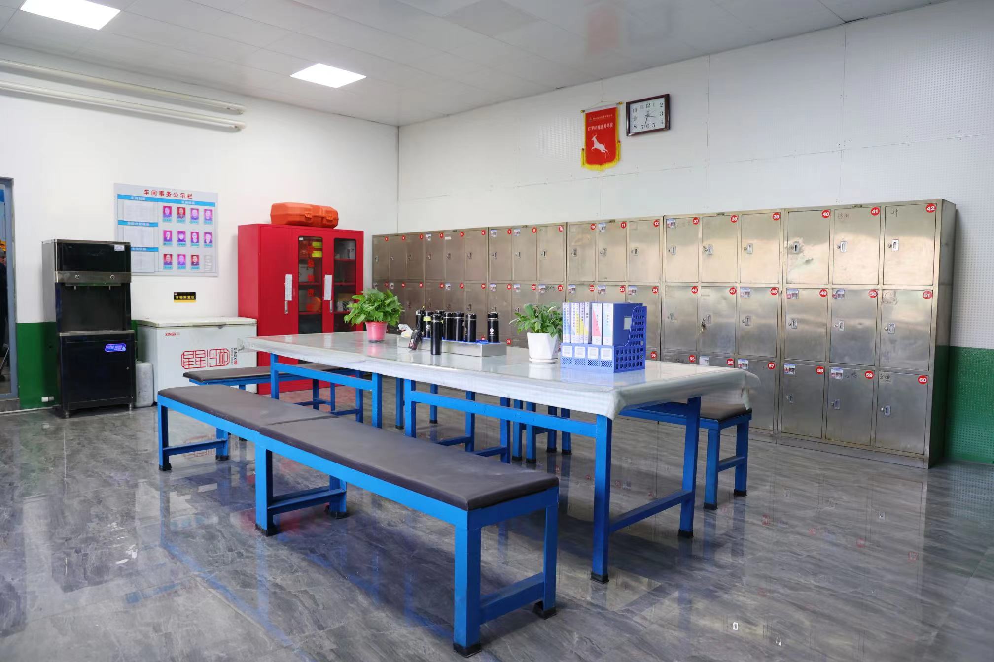 改造后的休息室窗明几净、桌椅整齐划一,绿植和盆装花朵映衬着如“家”般温馨,右侧雪白的墙壁是清晰醒目的红黑相间形象图标,墙上鲜红的羚羊旗激励着员工,在日常工作中,唯有持续不断的努力创造,才能有所收获。