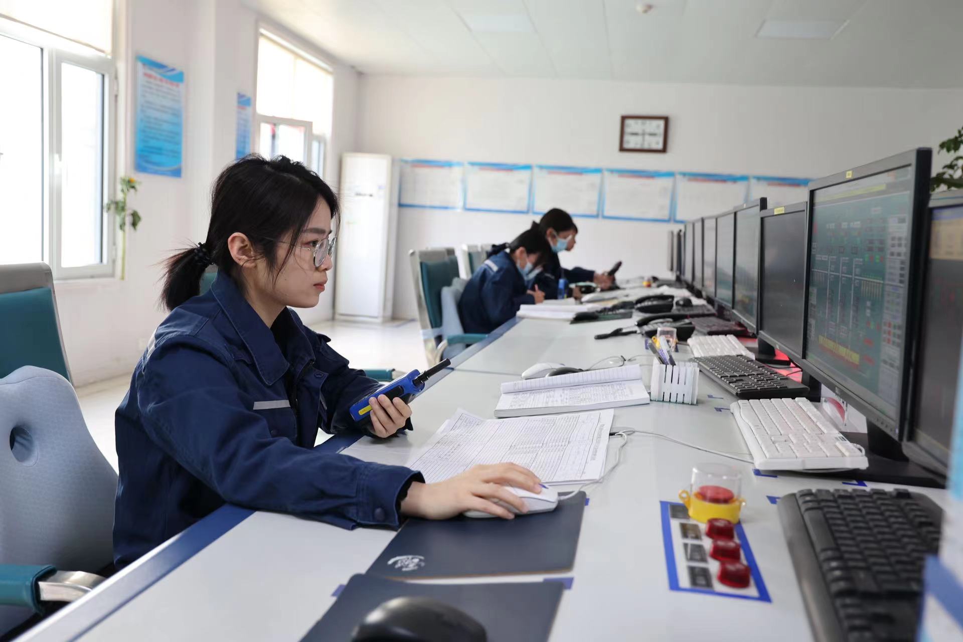 走进电石炉中控操作区域,一阵阵清脆的鼠标点击声、和谐的询问声回荡在大厅里。只见中控工们一手拿对讲机一手拿鼠标,两只眼睛在电脑屏的各个画面上不停地切换,忙着观察各个工艺参数。“作为中控工,我们必须做到‘耳听六路,眼观八方’,在岗的每一分钟都要全神贯注,任何时候都绝不能松懈,时刻关注工艺生产数据变化,及时发现生产异常,那就得打起十二分精神。”电石炉中控工杨晓虹说。