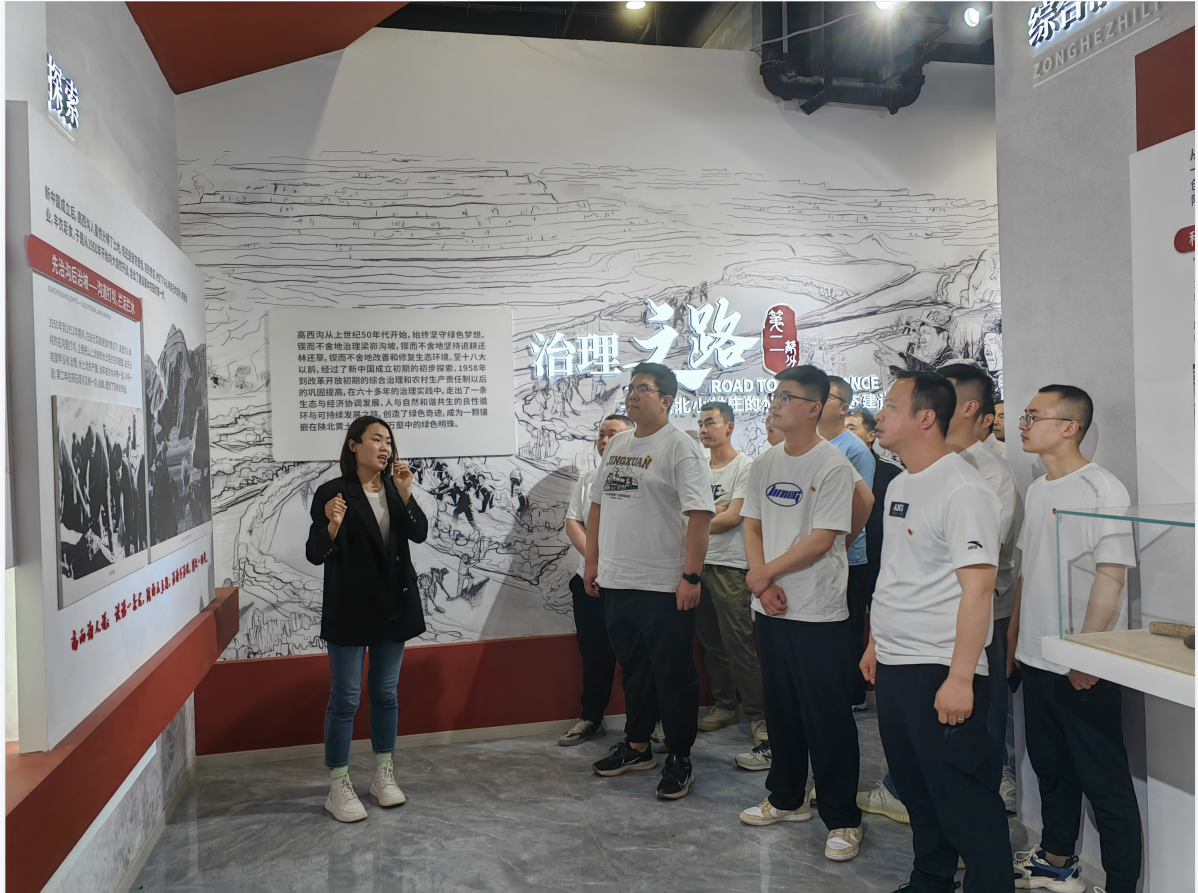 团员青年们首先参观了高西沟水保生态教育基地,了解了高西沟村在四任党支部的带领下,通过实行“三三制”,治山、治沟、治水、退耕还林,把穷山沟治理成山清水秀林茂的“陕北小江南”的奋斗历程。在龙头山山顶,大家现场聆听了习近平总书记在高西沟村考察时的情景,用心感受高西沟村践行“绿水青山就是金山银山”的理念,推进生态治理所取得的治理成效。