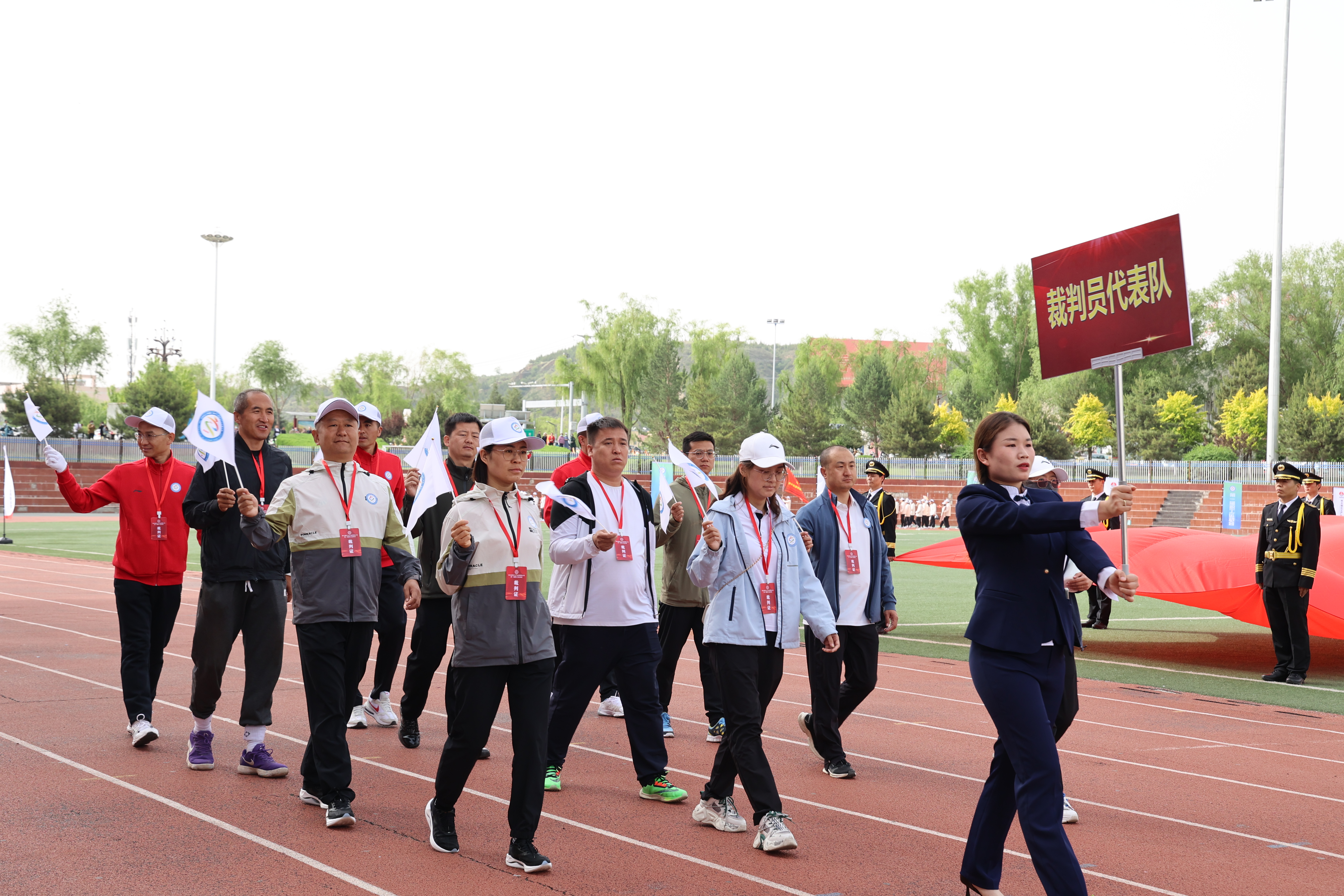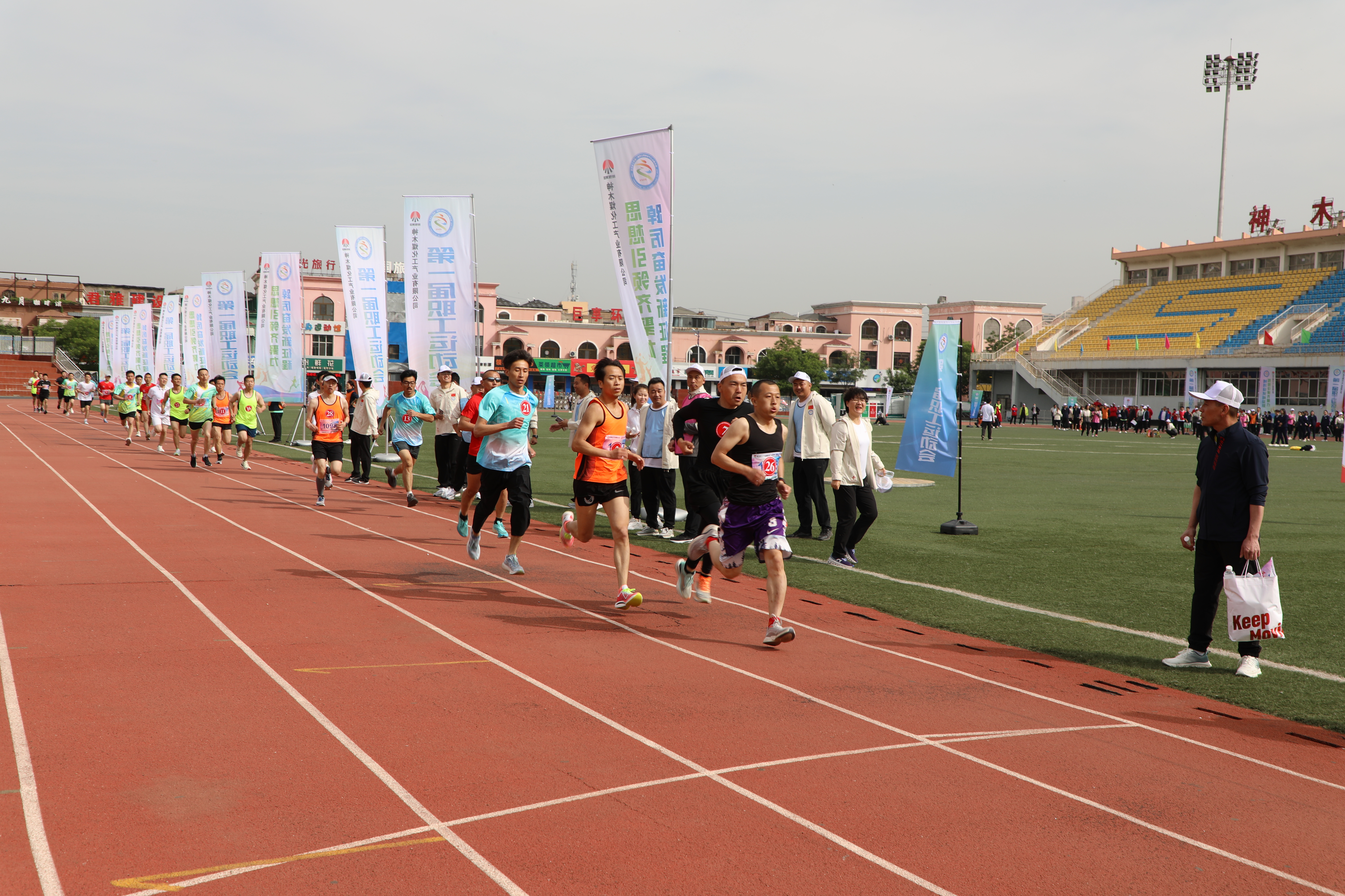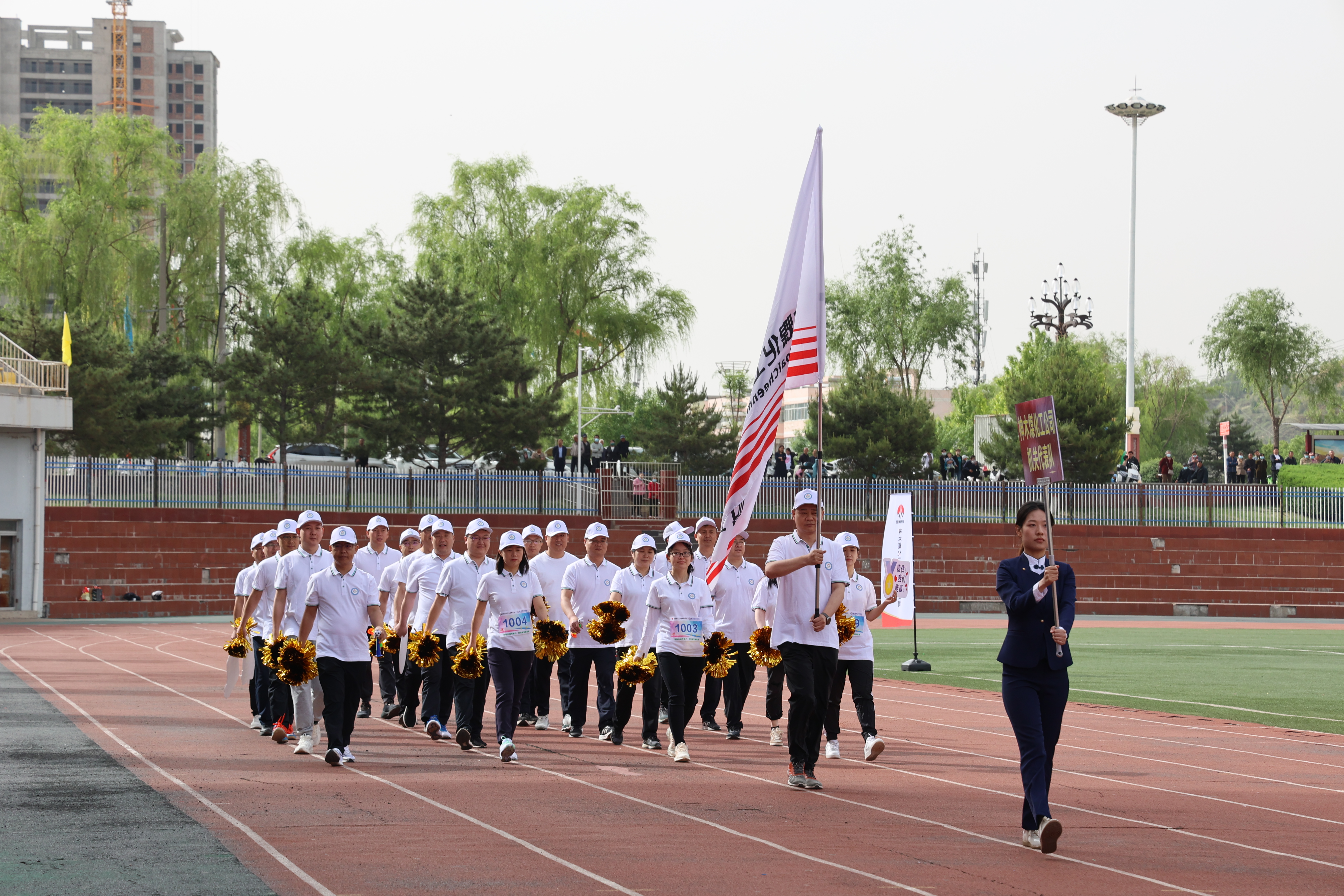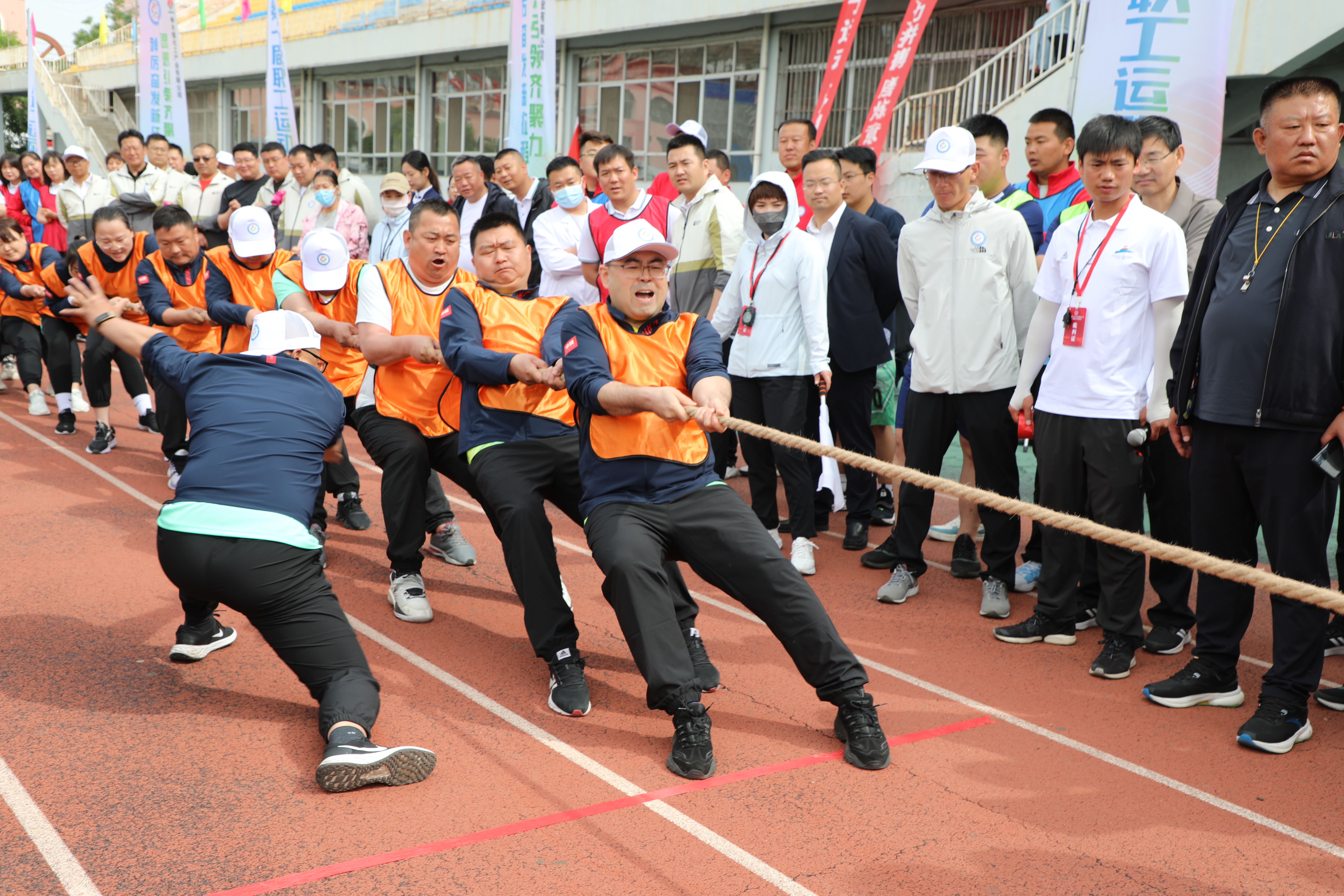 国旗飘飘,彩旗猎猎。三百健儿,神采飞扬。方阵威武,队列从容。英姿飒爽,号子响亮。升旗奏乐,职工肃穆;开幕致辞,掌声轰鸣。天籁之音,讴歌时代;腰鼓表演,震撼全场。领导接力,增进班子团结;呐喊助威,提升干部合力。