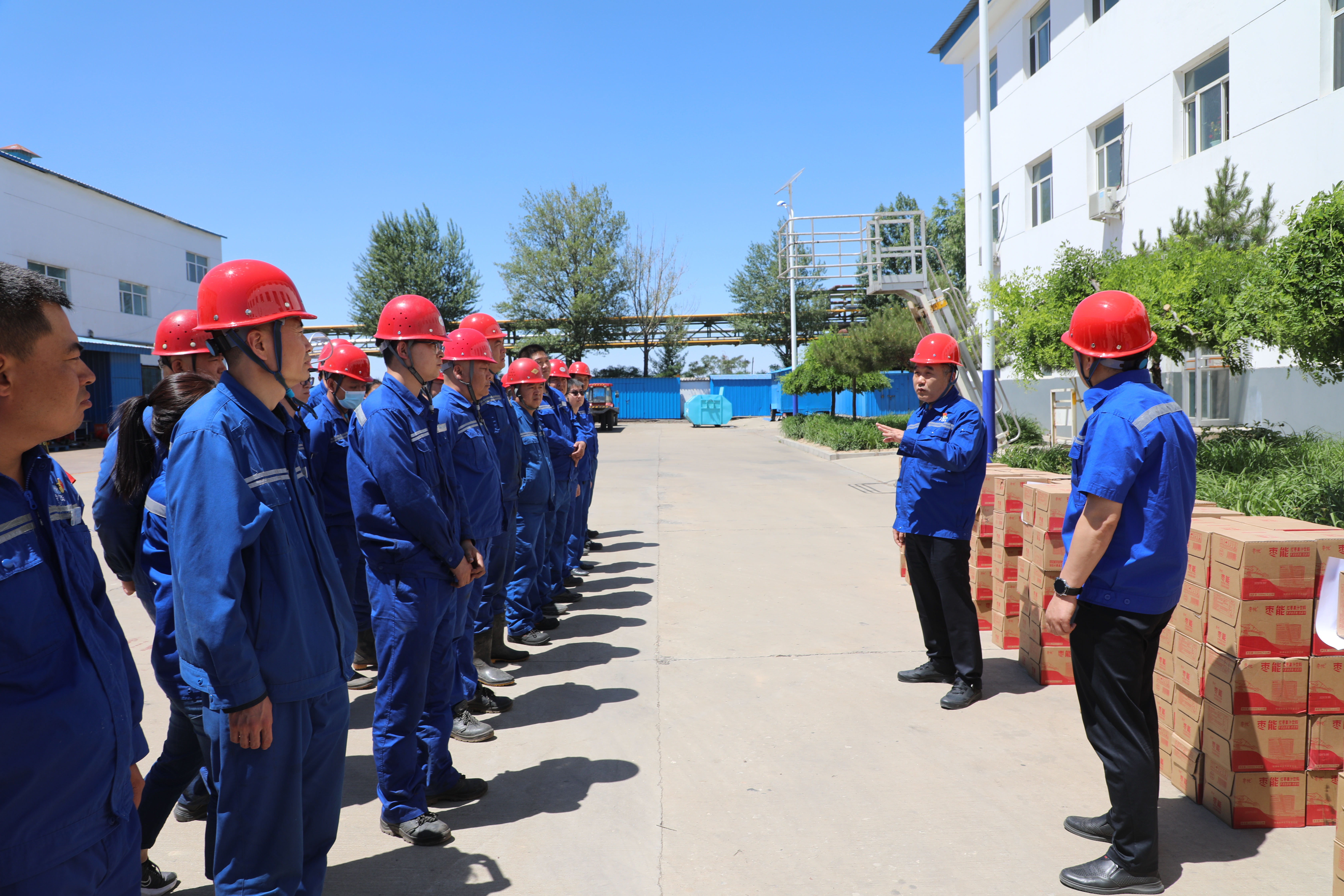 在质量监督部化验楼前,雷宏春为一线职工送上慰问品,对大家的辛勤付出表示感谢,并与现场职工亲切交谈,详细了解了老员工和新员工的收入情况。他强调,天元公司要坚持“一切为了职工、一切依靠职工”的理念,始终把职工最关心、最直接、最现实的利益问题摆在突出位置,持续为职工解难题、办实事、办好事,不断提升职工的获得感、幸福感和安全感,凝心聚力、真抓实干、团结奋斗,奋力开创企业高质量发展新局面。他鼓励一线职工,要坚定信心、攻坚克难,充分发扬天元人顽强拼搏、敢于挑战、奋力争先的精神,积极投身检修一线,立足本职、担当作为、敬业奉献,确保检修各项工作任务安全高效优质完成。