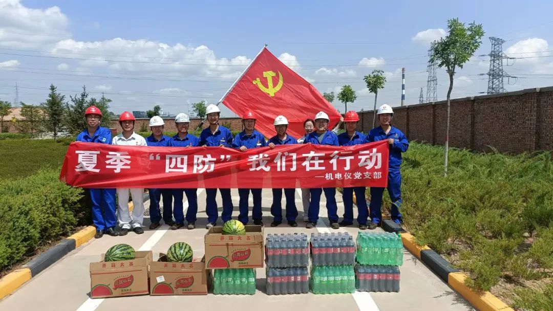 一线送清凉,关怀鼓干劲。进入盛夏以来,持续高温天气对奋战在检修一线的职工带来严峻“烤”验。为切实做好防暑降温工作,机电仪党支部积极开展“夏季四防,我们在行动”主题活动。党支部副书记周春带领党员干部向坚守在高温一线职工朋友送去了西瓜、饮品等防暑降温物品,把清凉送到一线工作区域,把关怀送到员工的心坎里,对他们的辛勤劳动表示诚挚的问候和衷心的感谢,并叮嘱员工们合理调整休息时间,面对高温天气时要扛起抓安全责任意识,保障大家职业安全和身心健康,切实做好防暑工作,真正将党的温暖送到职工群众手中,让长期辛苦在生产一线的职工感受到党组织的关怀和温暖。