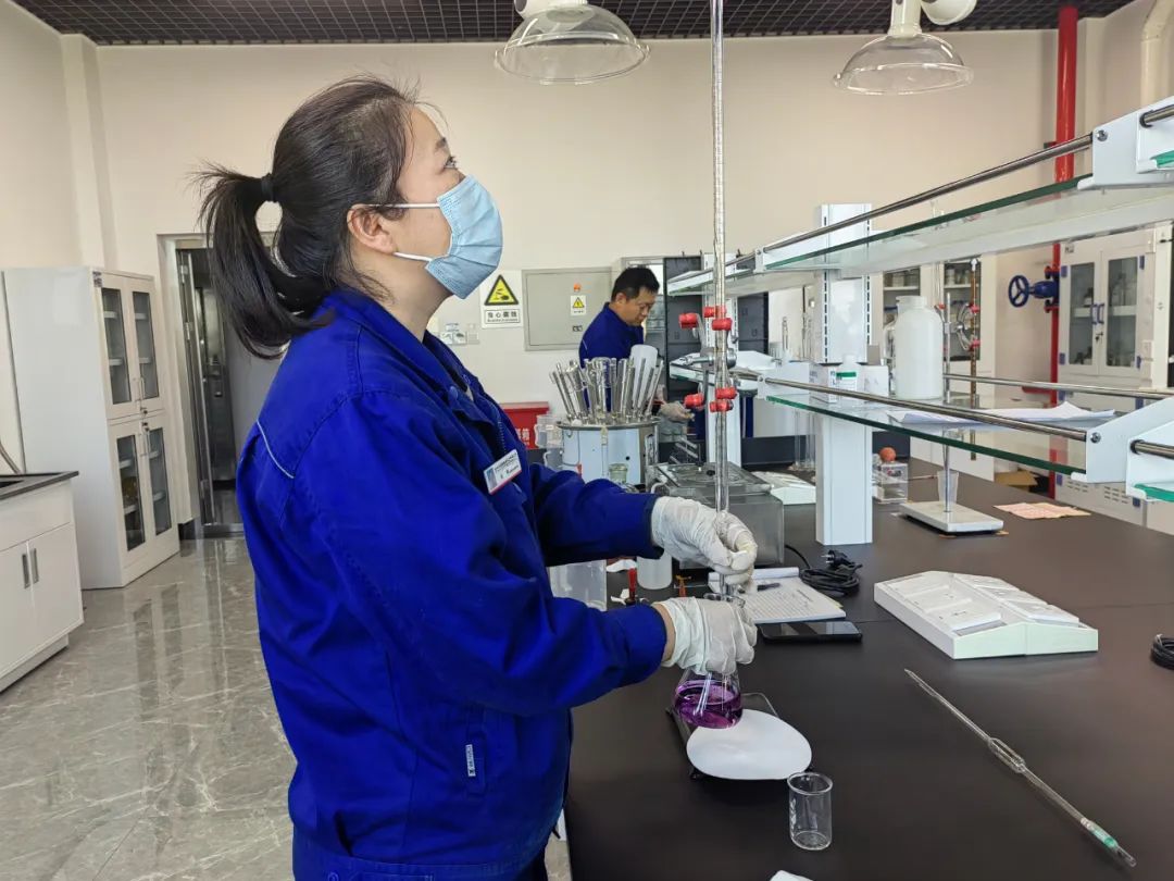 晶莹透亮的实验器具,沉着冷静的参赛选手,一丝不苟的培训老师,这5名化验人员凭借高超的手艺汇集在这里,每天的备战训练紧张而充实,选手们相互交流,切磋技艺,取长补短,大家都感觉在这段时间里收获颇丰。部门副主任工程师任绥成理论知识较丰富,他毫无保留地与大家共享自己积累的题库,让大家一同进步;有三十年分析经验的老师傅冯芳翠主动担任指导老师,在保证日常工作不受影响的前提下,利用下班时间,采取现场实际操作比武竞赛的方式,组织大家开展EDTA滴定分析。