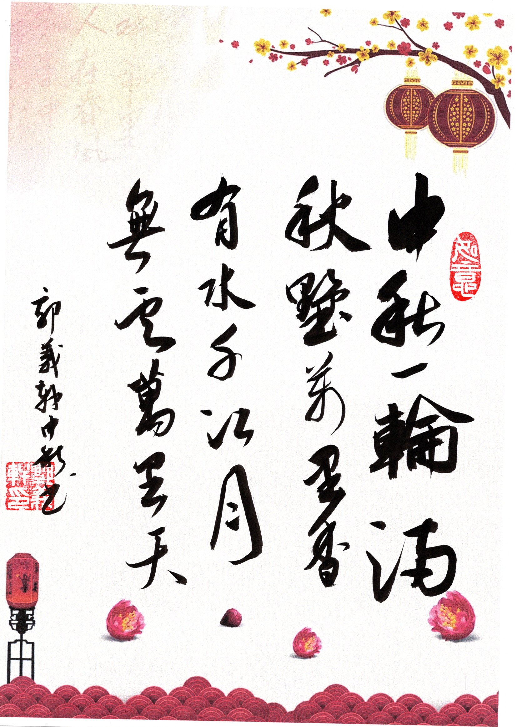 中秋一轮满,秋野万里香。有水千江月,无云万里天。
