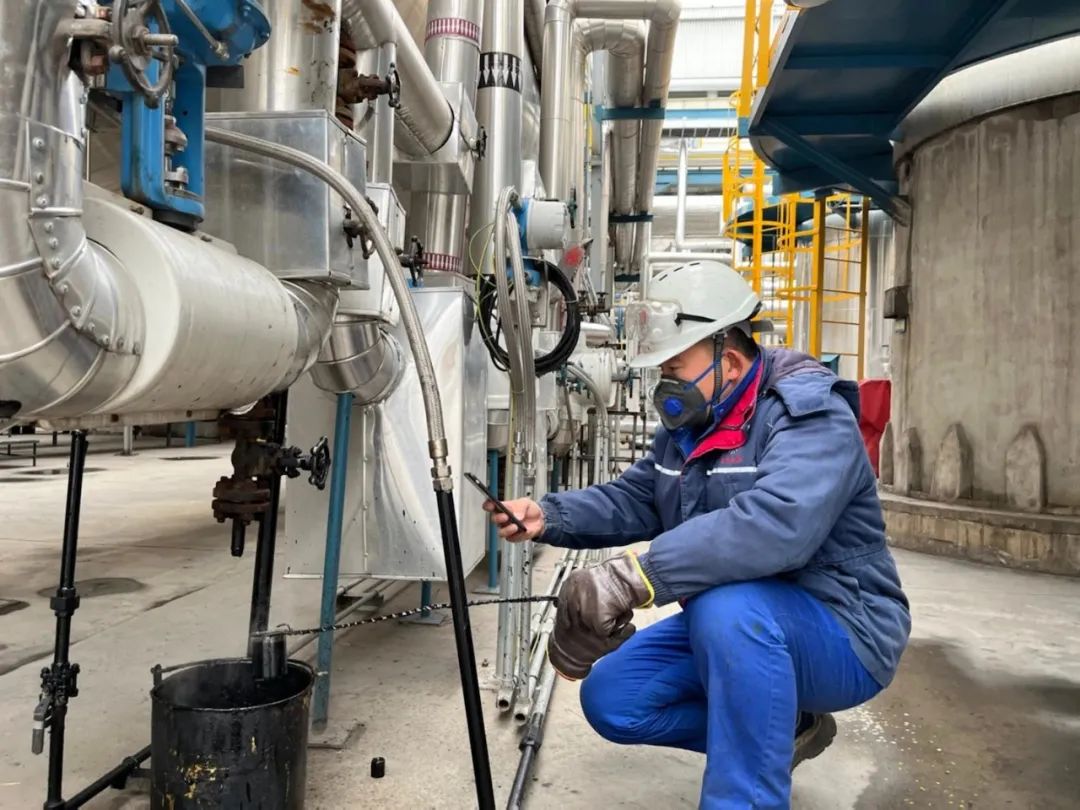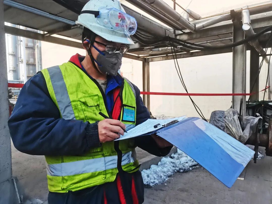 生产现场,巡检员师凯毅身穿棉袄,头顶安全帽,佩戴着测温枪一边工作,一边介绍道:“平时在装置区內巡回检查,可以算是御寒的法宝,不过今年的气温格外低,在室外巡检,还是会冷的打哆嗦。”他迎着寒风,按照巡检路线往前走,每到一处巡检点,他都会停下来绕着设备对声音、温度、气味进行一一排查。巡检完压缩机区域,师凯毅还精神饱满,他分享道:“汽轮机是FTH中心装置的核心设备,如果某一环节出现问题就会直接影响生产运行,尤其要注意汽轮机的温度、振动情况,不得有半点马虎。”师凯毅依次巡检完高压换热器区、反应器区域等所有巡检点,确保运行正常,才回到外操室。在寒冬里,正是有了这些不畏严寒、勇往直前的“巡逻兵”,才使公司系统安稳运行有了保障。