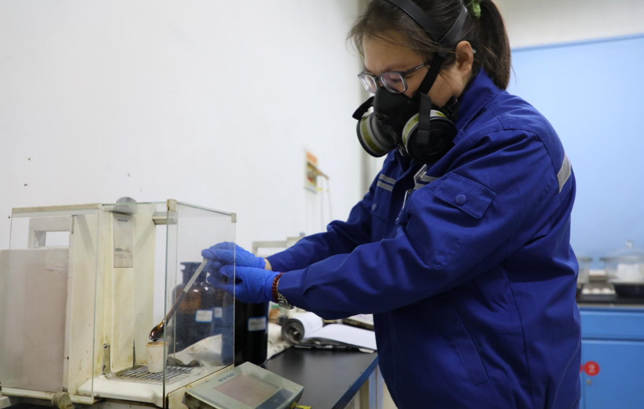 质量监督部高吉在进行煤焦油称样