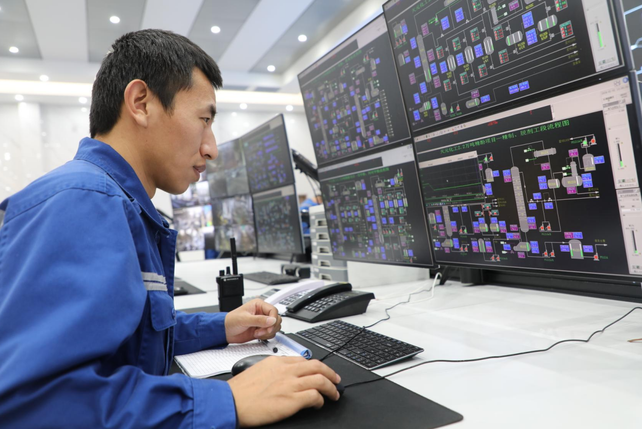精酚车间王李旭在认真监盘