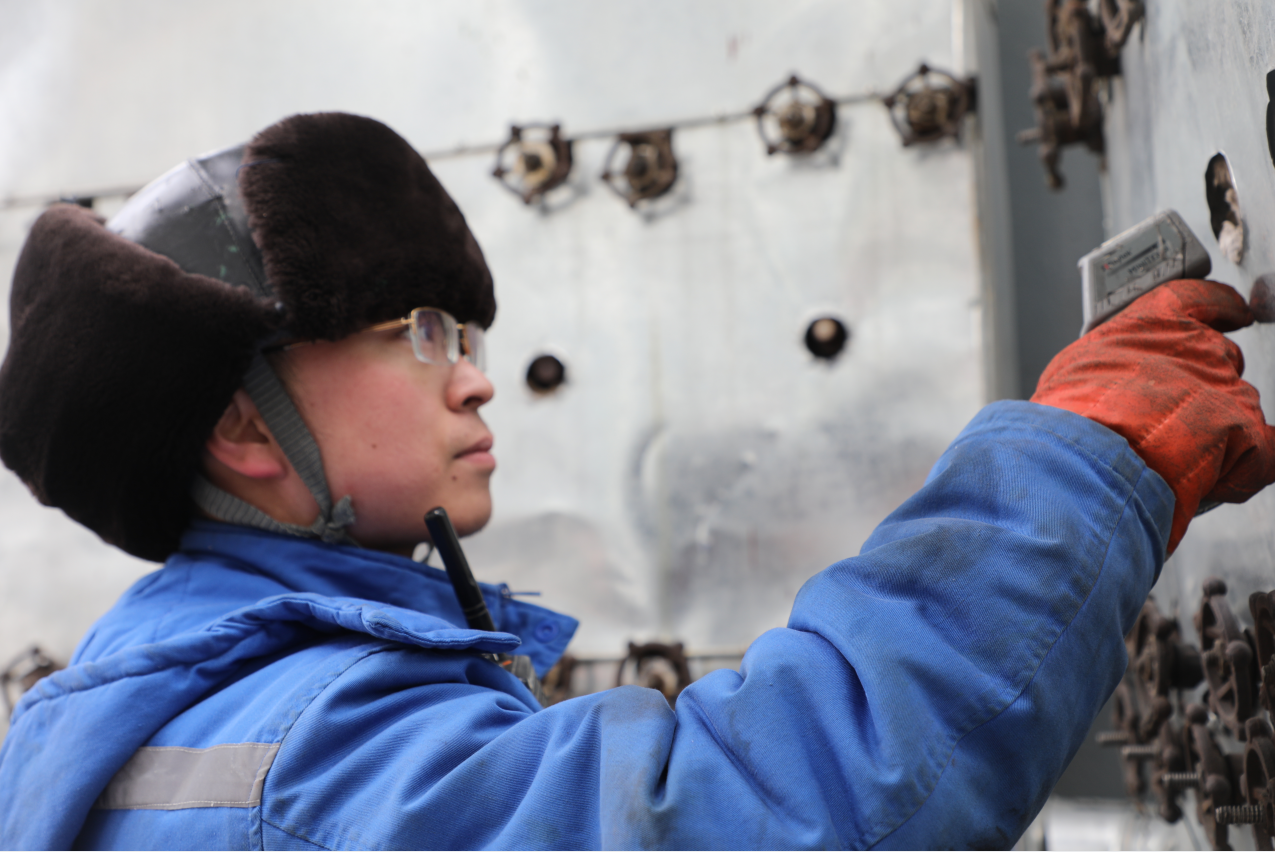 加氢车间杜沛奇在检查伴热疏水阀温度是否正常