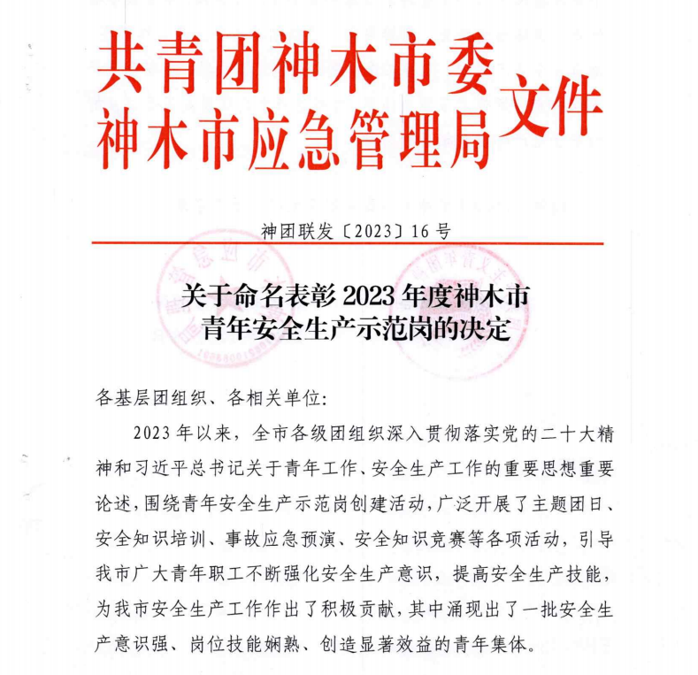 据了解,本次表彰主要是榆林和神木市激励在2023年以来,在安全生产、安全管理和安全生产素质提升方面表现突出的青年班组,荣誉称号有效期为2023年12月至2026年12月,共计三年时间。