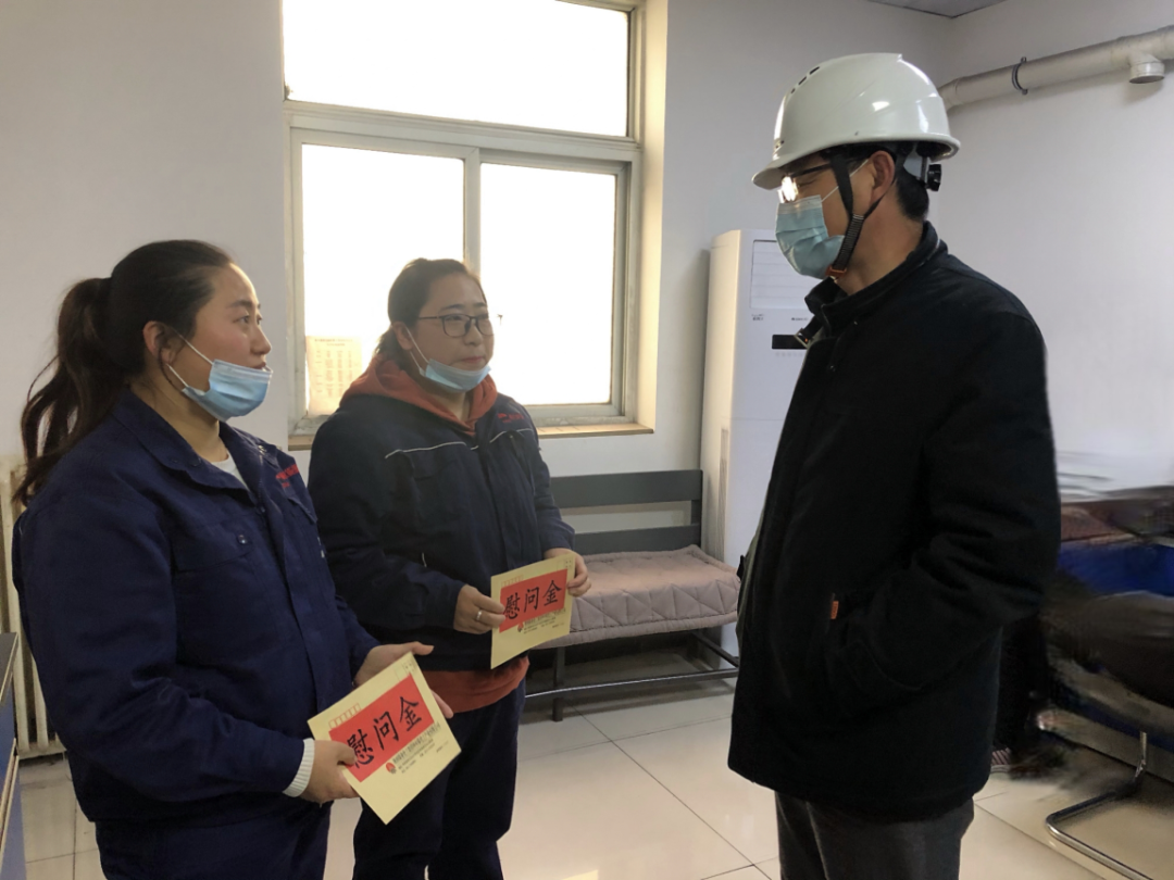 公司党委副书记、总经理封建利到电化公司慰问全国劳模辛文辉、困难职工刘耀霞,为他们带去了组织的关怀和温暖,同时强调要切实加强春节期间的安全管理工作。封建利在慰问困难职工刘耀霞时说:“身体是本钱,要幸福生活,快乐工作”“有什么困难就跟组织讲出来困难”,希望她在岗位上注意安全,保重身体,专心努力工作,企业是职工的依靠,会积极为大家解决实际困难。