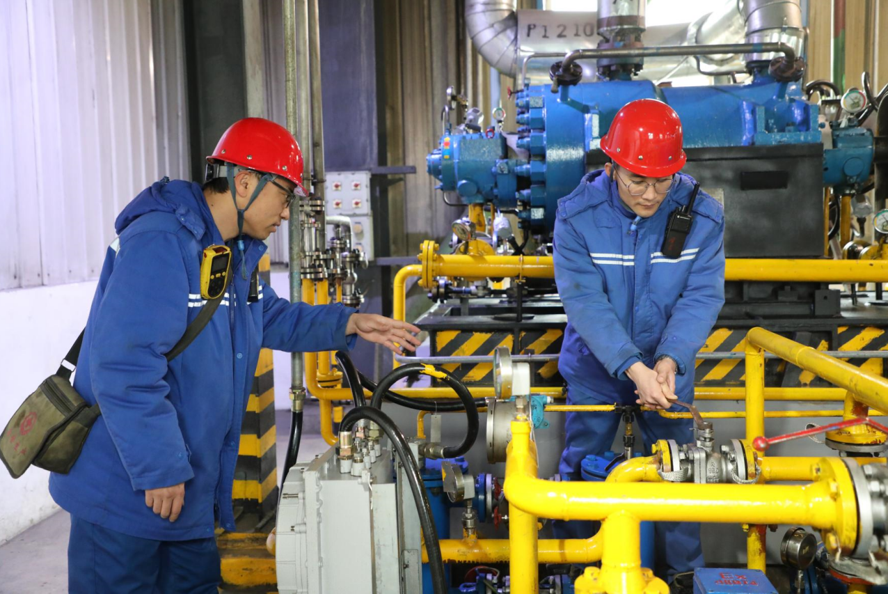 加氢车间黄海伦指导班员李盼盼调节高压泵润滑油压力