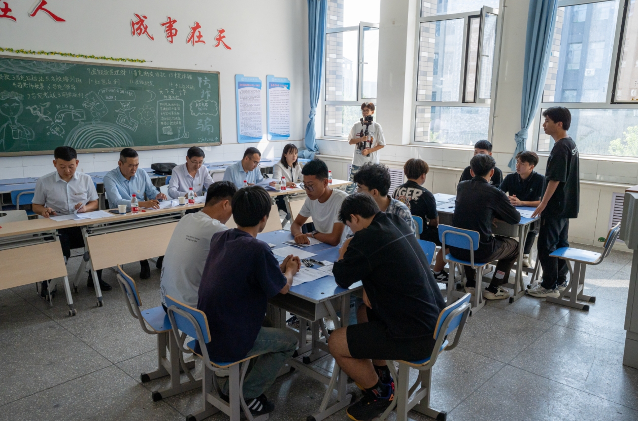 动员大会结束后,公司对100名学生依次进行“订单班”选拔面试,学生们通过讨论、总结、汇报等环节充分展示自己的优势和潜力。