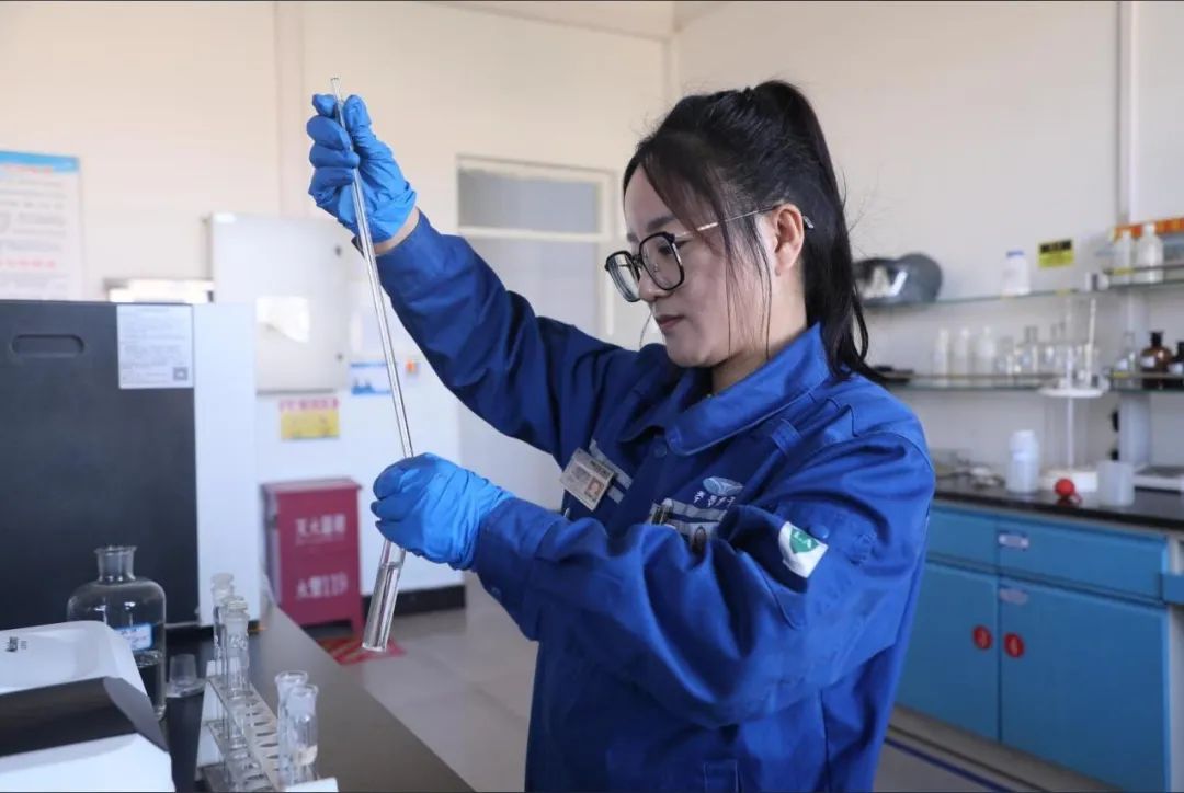 走进水质分析室,李亚荣正在进行除盐水二氧化硅分析,只见她先用移液管将标样取至比色管中,加入一定量的试剂,待完全反应后,在分光光度计上进行比色,然后进行定量计算,报出数据。她说:“节日期间,与同事们一起坚守在工作岗位上,我感到很充实。我会时刻保持严谨的工作态度,认真对待每一个检测项目,确保化验数据准确、及时、可靠,全力服务于企业安全生产。”