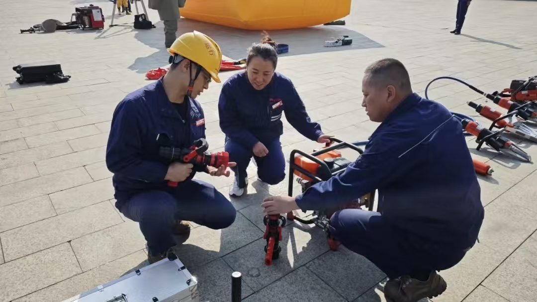 活动中,能源公司消防救援队展示了正压式空气呼吸器使用技巧、心肺复苏术操作要点以及灭火器的正确使用方法,讲解了消防安全知识、消防安全警示案例、消防设备的性能及使用方法、自救逃生技能等内容,组织了应急技能和灭火器使用实操环节,进一步加强员工的消防安全意识和自救及互救能力,引导全体员工从思想上重视,行动上落实,做到会报警、会灭火、会自救、会逃生。同时,能源公司消防救援队还邀请职工现场观看、体验了个体防护装备、带压堵漏工具、破拆营救装备系统等20余种应急消防装备,让大家对消防器材有了更直观的认识。