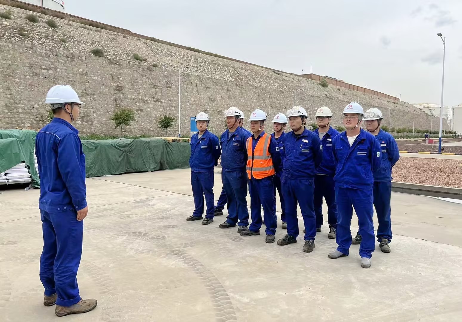 “小刘,煤焦油卸车时油品泄漏怎样进行紧急处置?”“首先立即协同司机关闭槽车出口阀门,同时向生产调度、中心领导汇报现场情况,然后班长组织岗位人员围堵好泄漏的油品,并使用防爆工具及时清理回收……”在公司公用储运中心班前会上,班组长对员工现场提问,以检验员工对应知应会知识的掌握情况。各中心横大班不断探索安全教育新路径,有效利用每日班前十分钟,将“每日一题”转化为现场模拟,随机抽选员工现场演练、实际操作,将理论与实操相结合,确保安全教育持续有效。