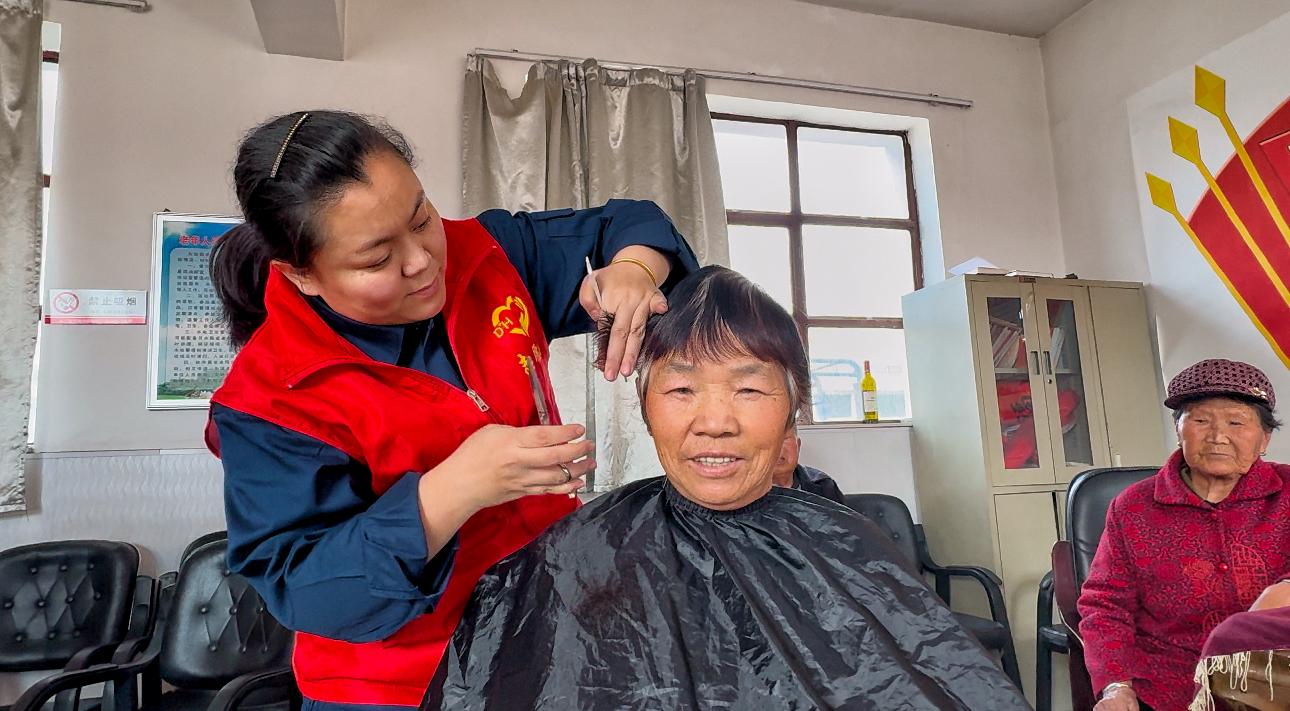 “大娘,您想剪个什么发型?”电石党支部张妮将理发手艺带到了养老院。她一边温柔地问询,一边拿出理发工具,简单交流后,便开始挥舞着手中的理发器,伴随着“咔咔”的声音,老人们换上了新发型,精神抖擞、神采奕奕。排队等待理发的间隙,贴心的志愿者小心翼翼地握起老人的手,耐心为其修剪指甲、按摩、捶背捶腿,眼神里充满了专注和关爱。
