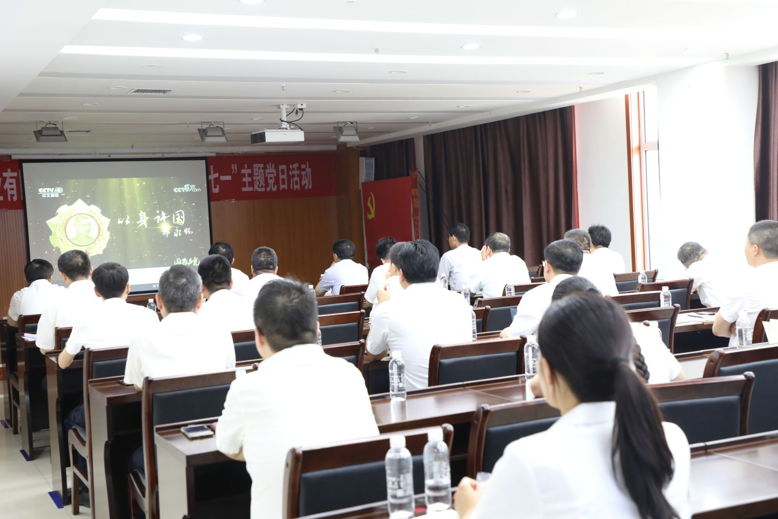 宣誓结束后,活动组织观看了《国家光荣》之《以身许国——郭永怀》,进一步弘扬老一辈革命家无私奉献、埋头苦干的崇高精神,使全体党员深刻感悟一代代共产党人的坚定信念与赤子情怀。郭永怀放弃美国优厚待遇,在他的生命的最后十个年头,全身心地投入我国的“两弹一星”事业,常年奔波在大漠深处和保密研究机构的爱国和无私奉献精神,深深地感动着在场的每一名党员。