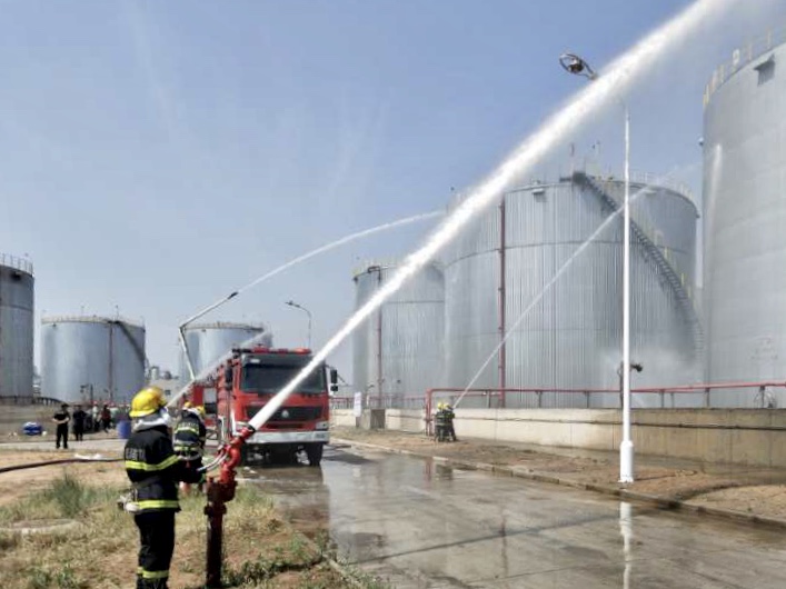 今年六月是全国第19个安全生产月,按照东鑫垣公司安全生产月统一部署,6月12日上午,府谷县应急管理局和该公司联合主办的储油罐区T-54206油罐泄漏着火事故应急演练在该公司制油分厂成品油罐区开展。府谷县应急管理局、庙沟门镇人民政府、该公司相关部门人员等100余人参加演练。