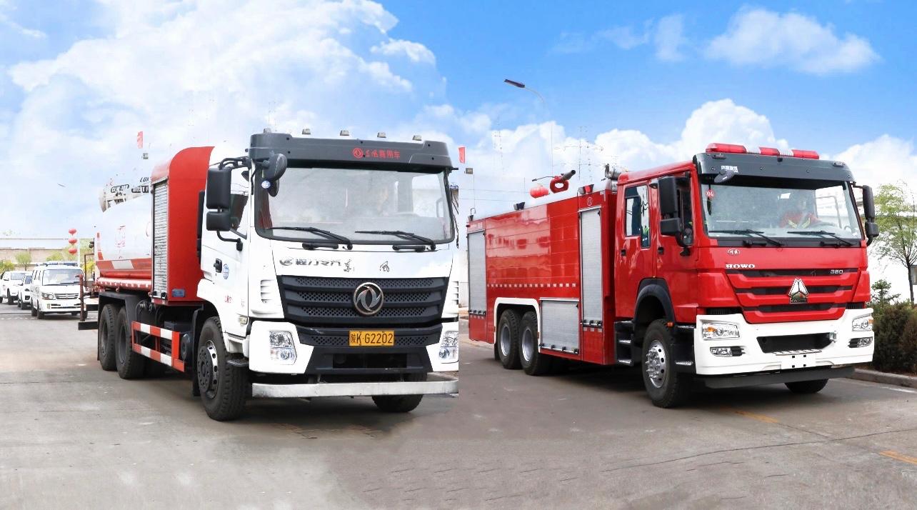 目前全国消防安全形势日益严峻,为了跟上能源公司高速发展的步伐,更好地发挥消防队在企业发展中的保驾护航作用,并承担社会消防义务,能源公司组建了专职应急消防救援队。目前应急消防队配备人员10人,配备正压式空气呼吸器9套、16吨泡沫水罐联用消防车、6吨ABC干粉灭火车各一辆;配备了移动式消防炮、移动发电机、便携式4合一有毒气体探测仪等消防器材。此外,还配有侦察无人机一台,主要目标为通过航拍模式加强对大气、水质环境质量的现场监测。