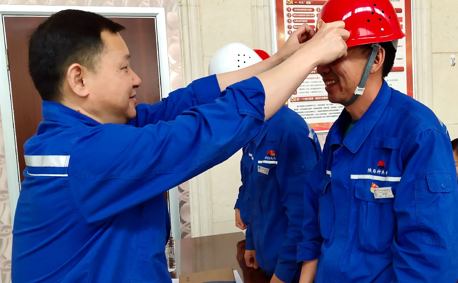 “身为党员的我们,从党徽上帽的那一刻开始,我们就亮明了身份,所以大家一定要注意自己的一言一行,要敢于亮剑,尤其是在安全生产方面,把党员先锋模范作用发挥出来,要勇于承担更多的责任,干更多的活,要零容忍一切的三违行为。”公司党委书记、董事长辛文辉边说边为热电运行党支部的党员们贴上身份标签。