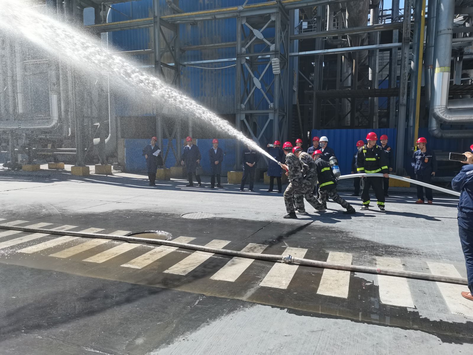 在电石分厂,雷宏春要求立即启动火灾应急预案,对该公司火灾事故的应急指挥系统和事故现场应急反应能力进行检查。当看到该公司用6分钟时间全面启动应急预案,消防车、各级事故应急人员到达指定现场开展灭火作业时,他表示了肯定。并向现场工作人员强调,应急救援预案演练要定期举行,各级指挥人员要熟练掌握应急预案的各项内容,确保养兵千日,用兵一时,关键时刻能出手、打胜仗。