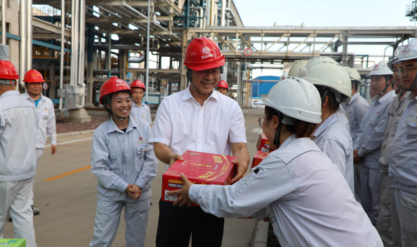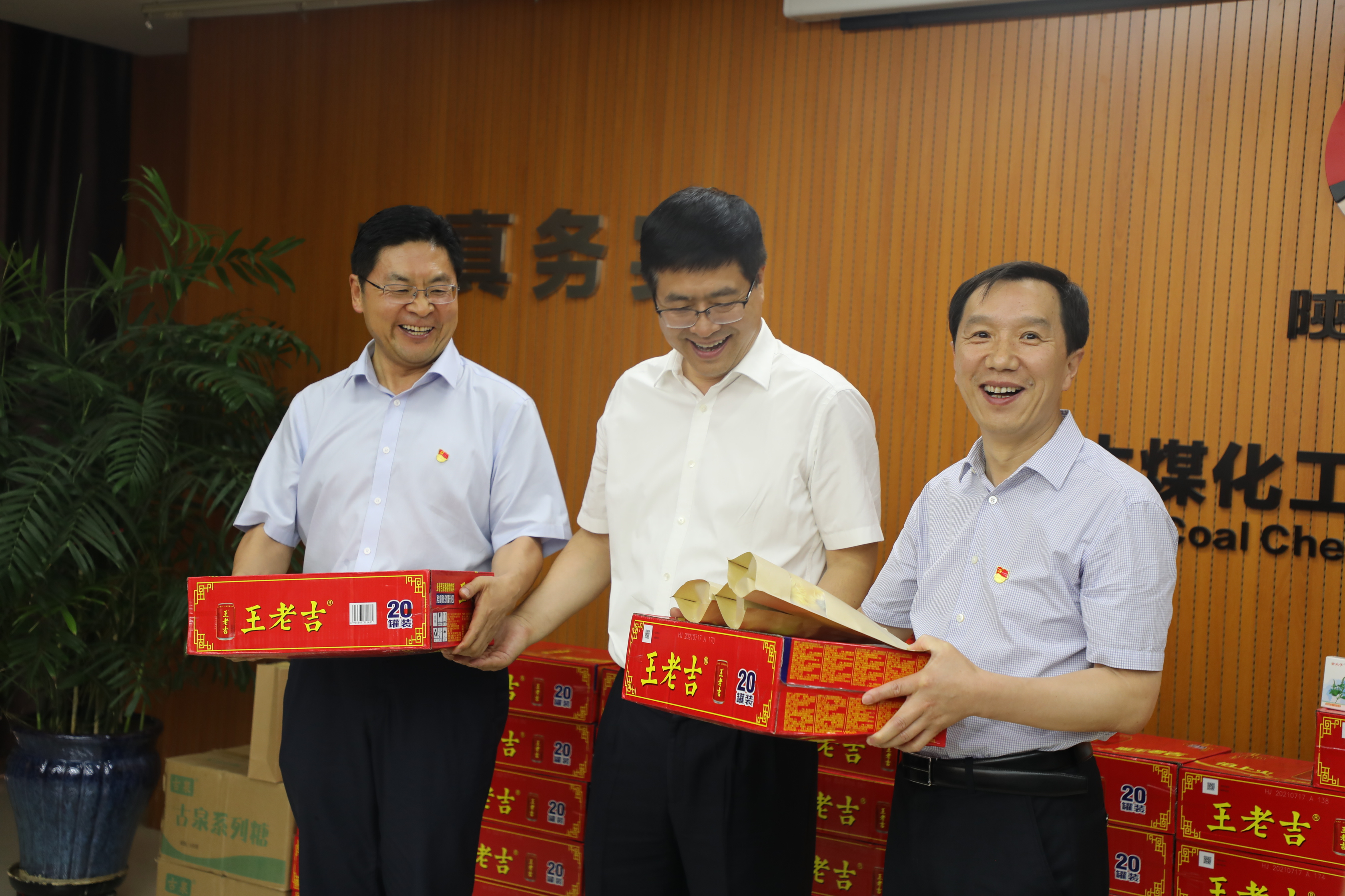 7月27日,陕西省总工会党组副书记、副主席兰新哲,榆林市总工会常务副主席宋锦文,中共神木市市委书记杨成林,中共神木市市委常委、统战部部长、总工会党组书记、主席韩虎忠等来神木煤化工公司调研慰问。