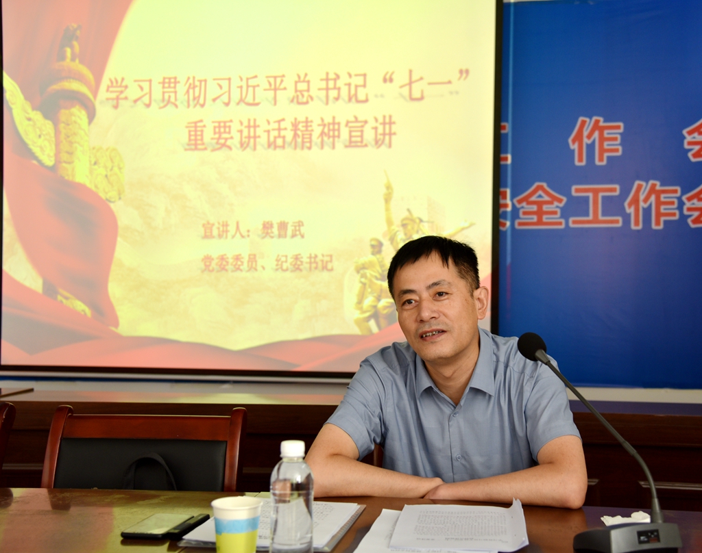 宣讲团成员、公司党委委员、纪委书记樊曹武作专题宣讲,以习近平总书记“七一”重要讲话的重大意义及全面建成小康社会的历史成就等六个“深入领会”为主题,结合当前国际、国内、陕煤集团及神木煤化工公司的形势进行分析解读。