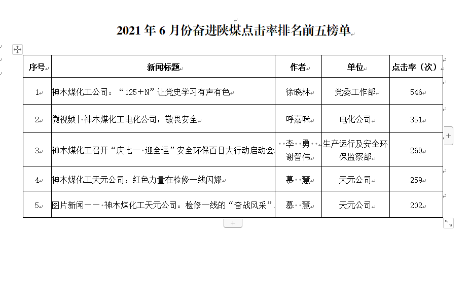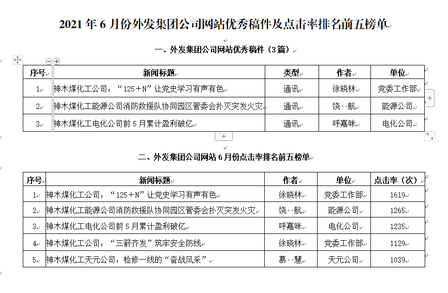 上一条:关于2021年7月份神木煤化工公司发稿及优秀稿件评选情况的通报