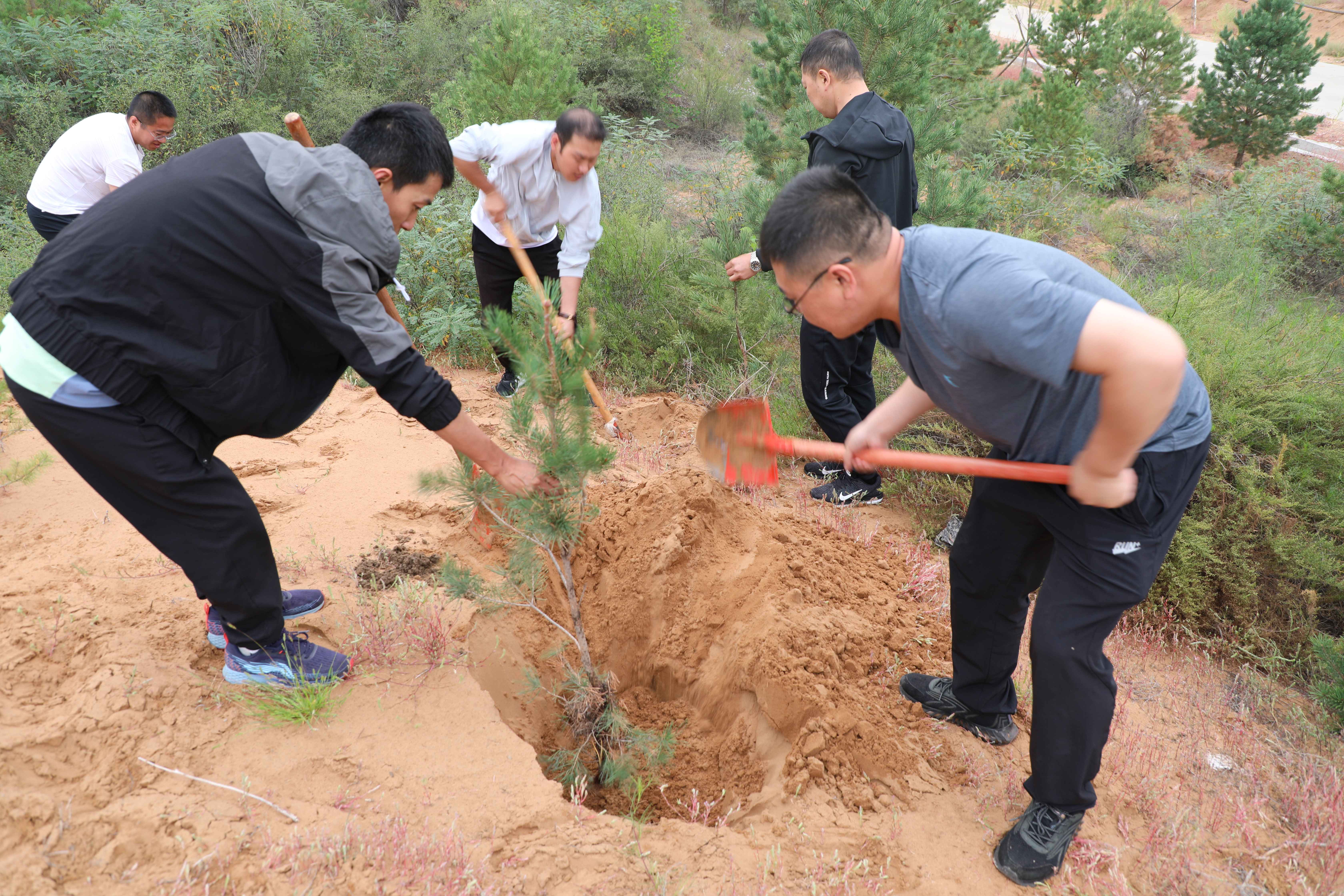 履行责任,沙地增绿。为了让广大党员干部参与到生态文明建设的进程中,在此次培训过程中,能源公司党委还开展了“走进毛乌素沙漠 防砂治沙党员先行”义务植树活动。植树现场,大家拿着锄头等工具,热情高涨,干劲十足,50余棵树苗被栽种在治沙基地。刚种植完,一场淅淅沥沥的细雨便如约而至,及时为补摘的树苗补充水份。通过亲身体验植树活动,大家用实际行动为家园增添一片新绿,为生态文明建设贡献一份力量。最后,在学员们团结协作、相扶相持、不离不弃的团建活动中,培训活动圆满结束。