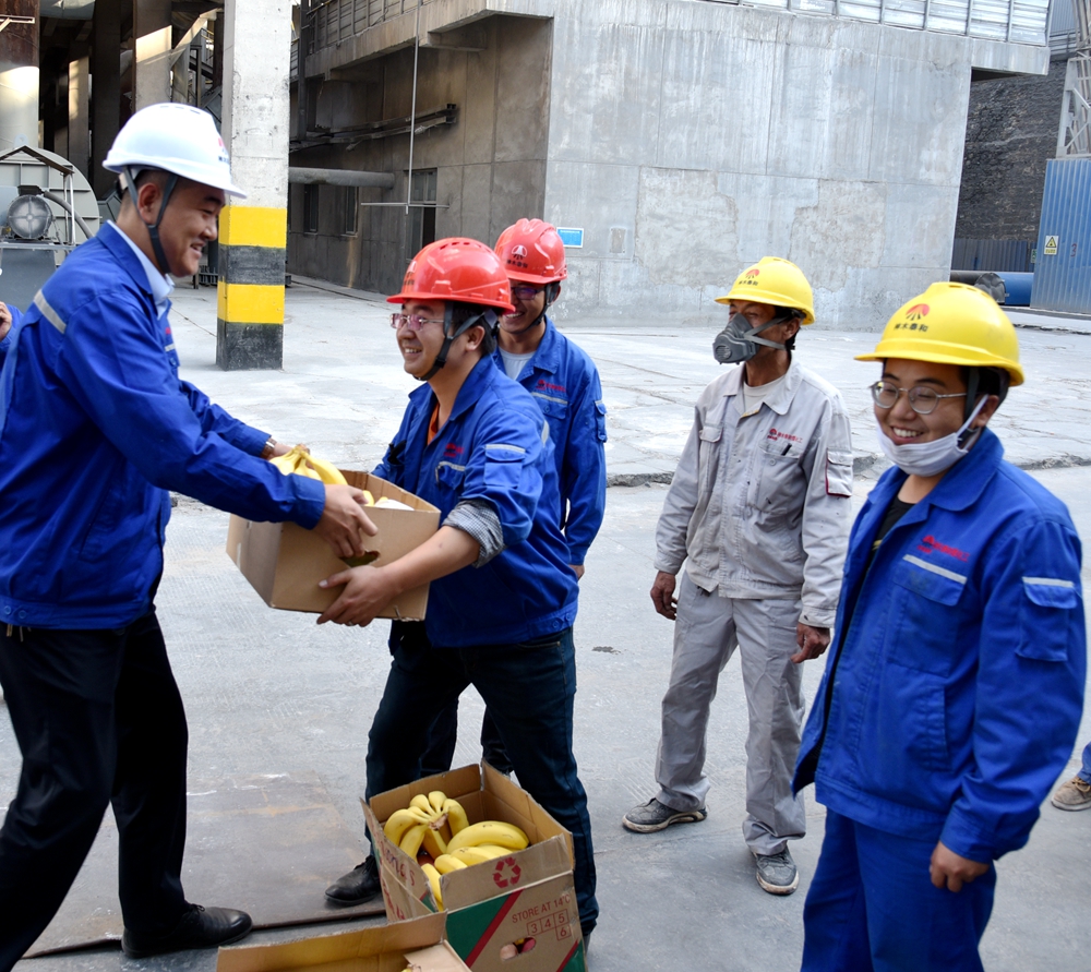泰和公司党总支副书记、董事长王志忠,副总经理袁大双及综合管理部人员深入车间一线,向节日期间奋战在工作岗位的一线员工送去新鲜的水果和节日祝福。在石灰值班室,王志忠向战斗在工作岗位的人员亲切致意和慰问,并就节日期间公司的生产状况及安全运行情况进行详细了解和指导,使员工切实感受到公司的温暖和关怀。(邓国涛)