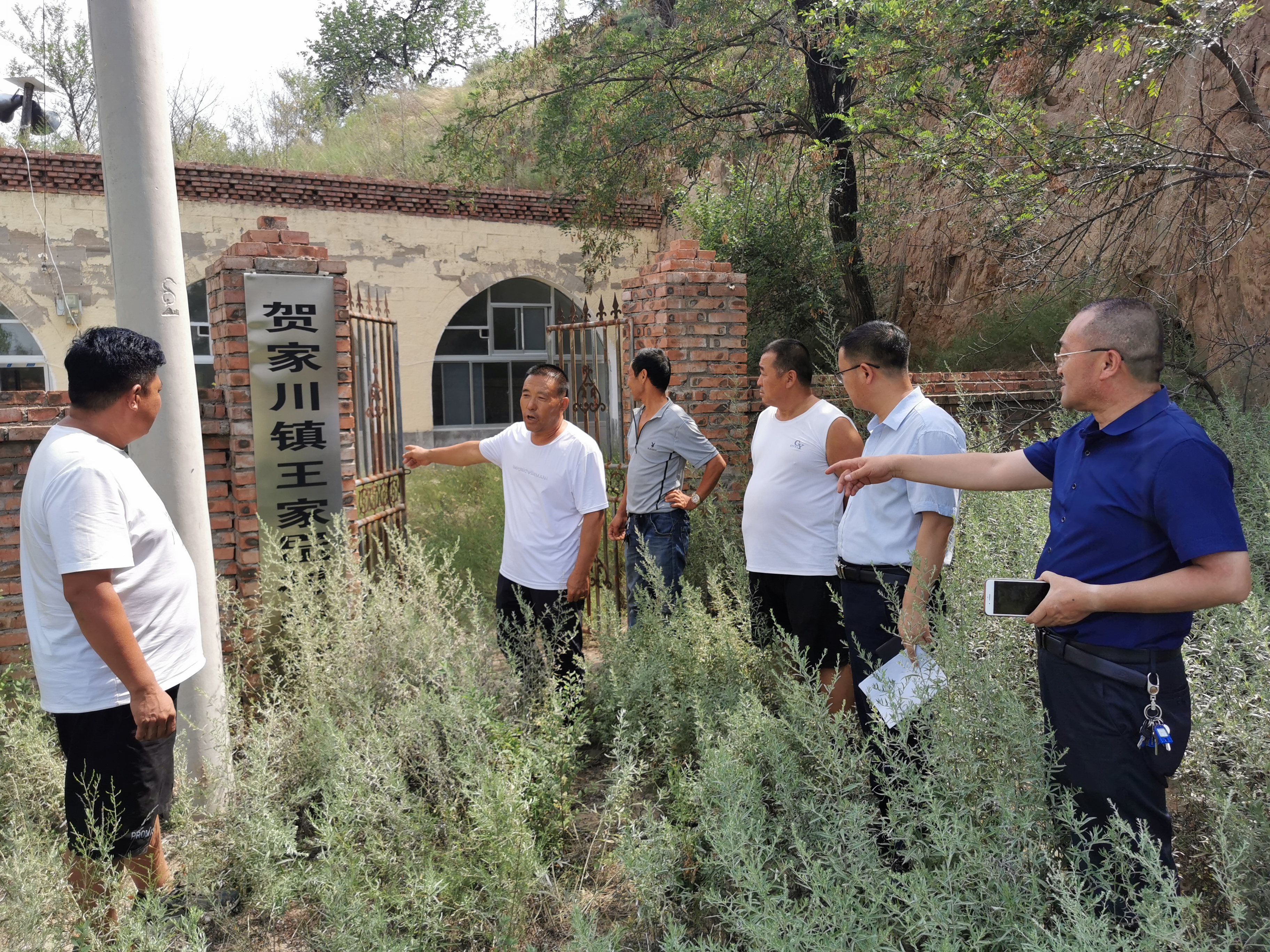 汽车沿着蜿蜒的通村路行驶,来到贺家川镇杨家沟村,在后杨家沟组地坝前的枣树下,务农归来的三五村民、村干部以及电化公司负责“助力乡村振兴”的特派员,正围在一起,共同商讨为5处淤地坝加高坝楞,增设排洪口。