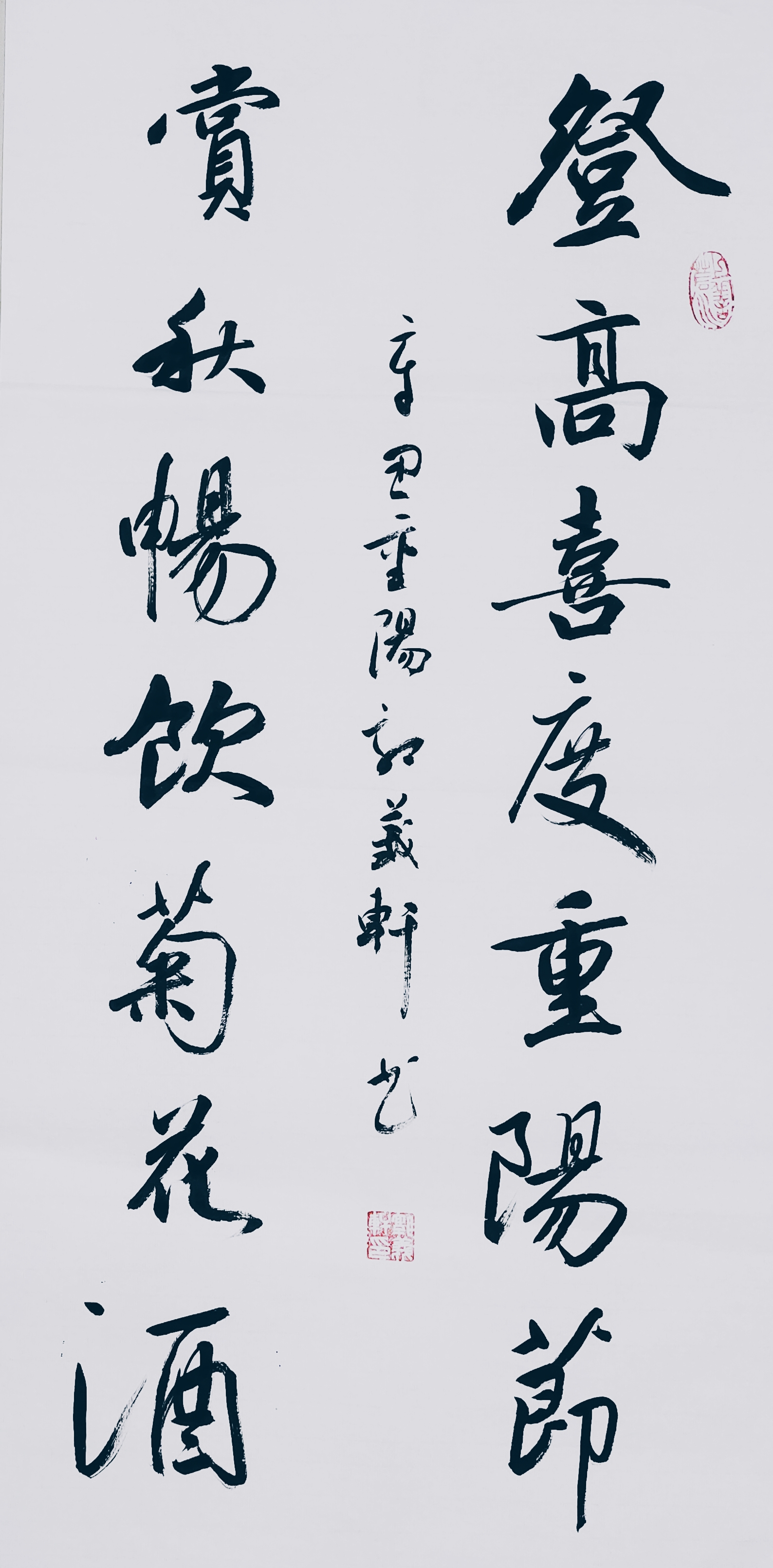 对联:登高喜度重阳节,赏菊畅饮菊花酒。