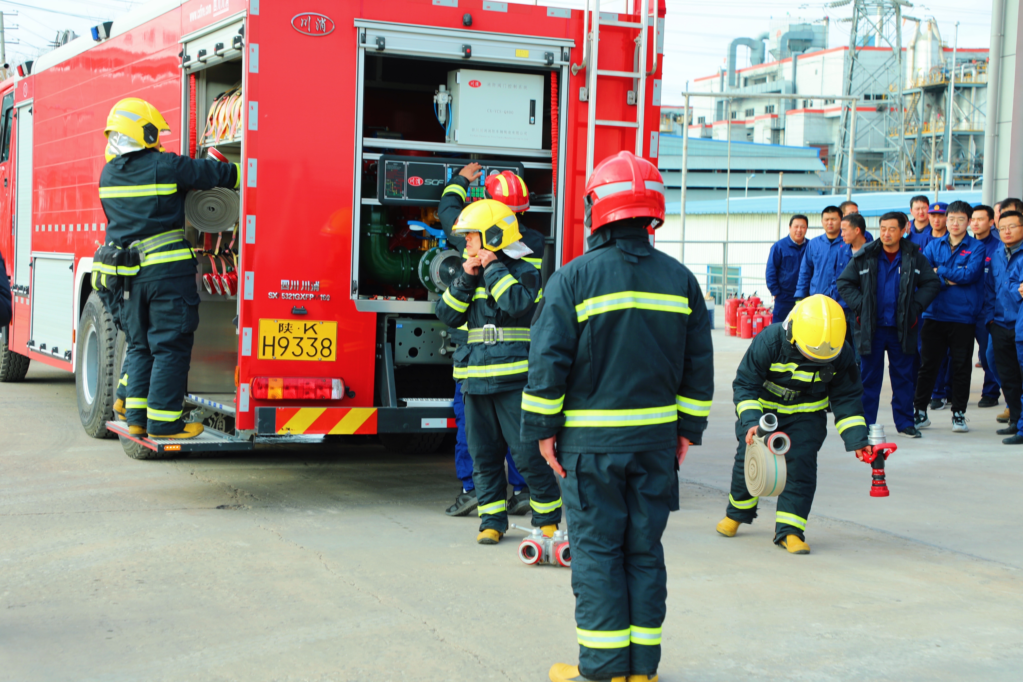 本次活动举办地点位于能源公司消防救援队新建营房,活动共设消防装备器材展、灭火救援操法实演、灭火器的正确使用方法教学、灭火器灭油盘火操法实操、心肺复苏术实操教学、正压式空气呼吸器实操教学、火场逃生术实操教学等内容。